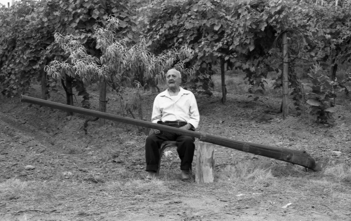 Nonno centenario con schiopon (fucile speciale per la caccia in laguna)