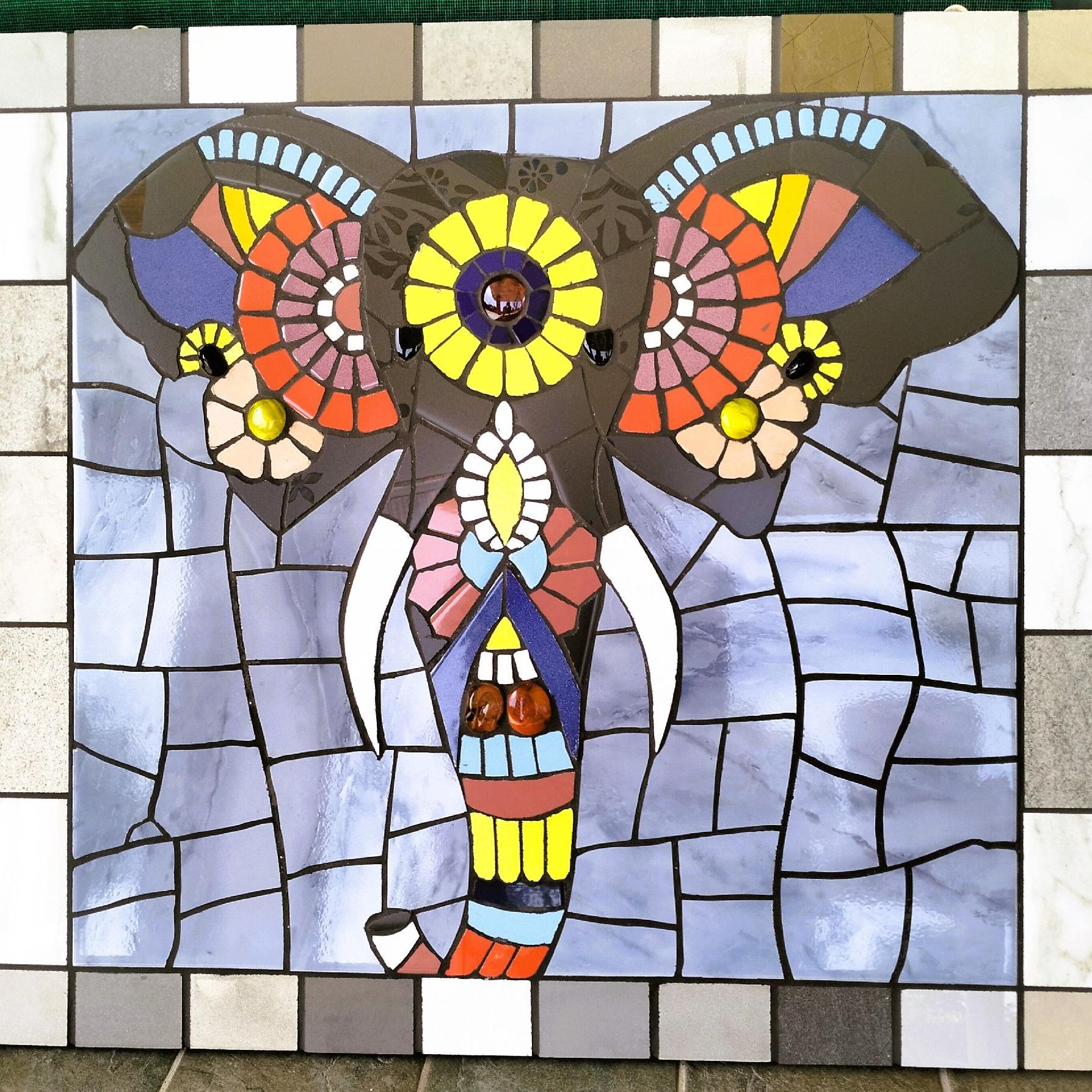 Quadro in mosaico di ceramica di un elefante stilizzato