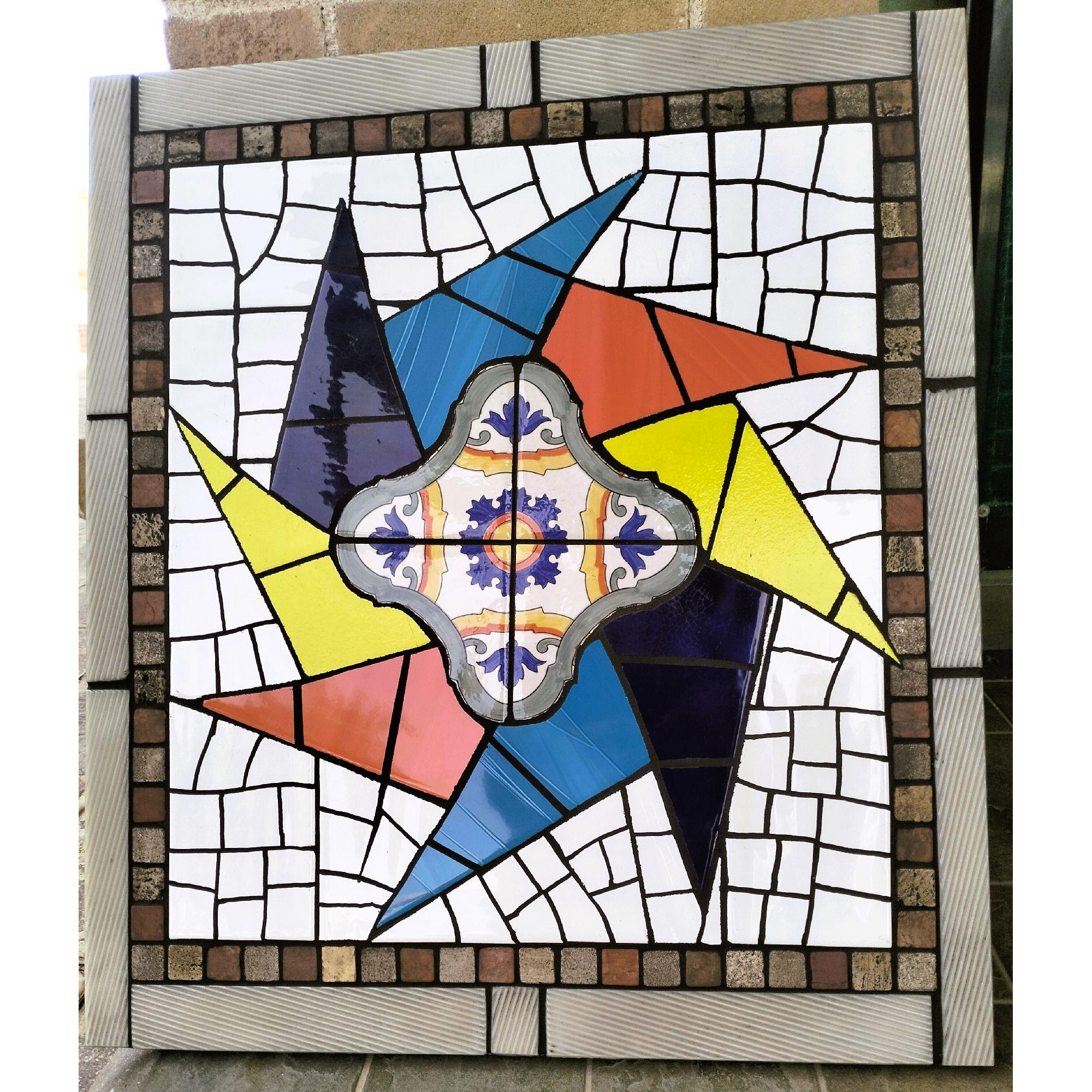 Quadro astratto in mosaico di ceramica con base legno fatto da me...