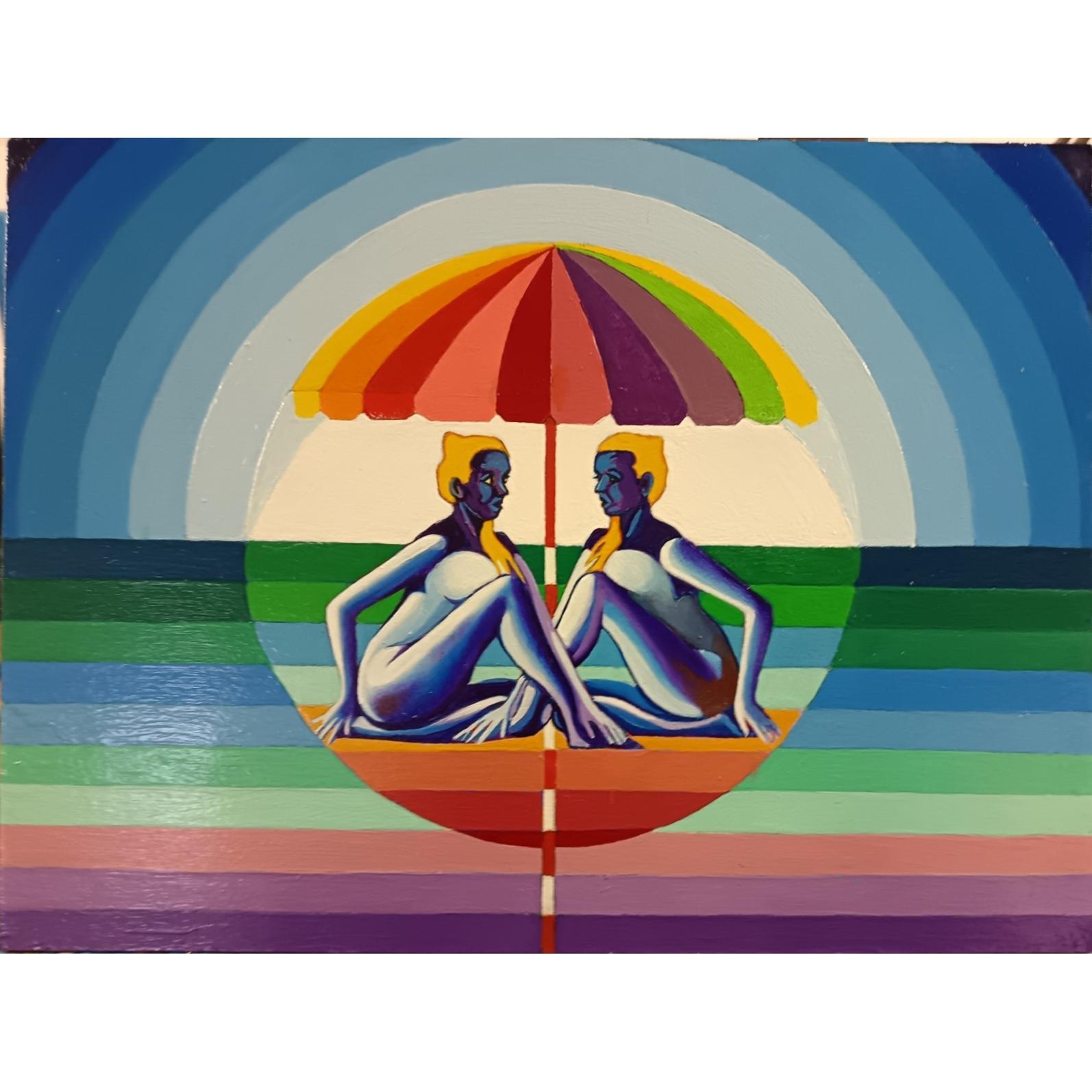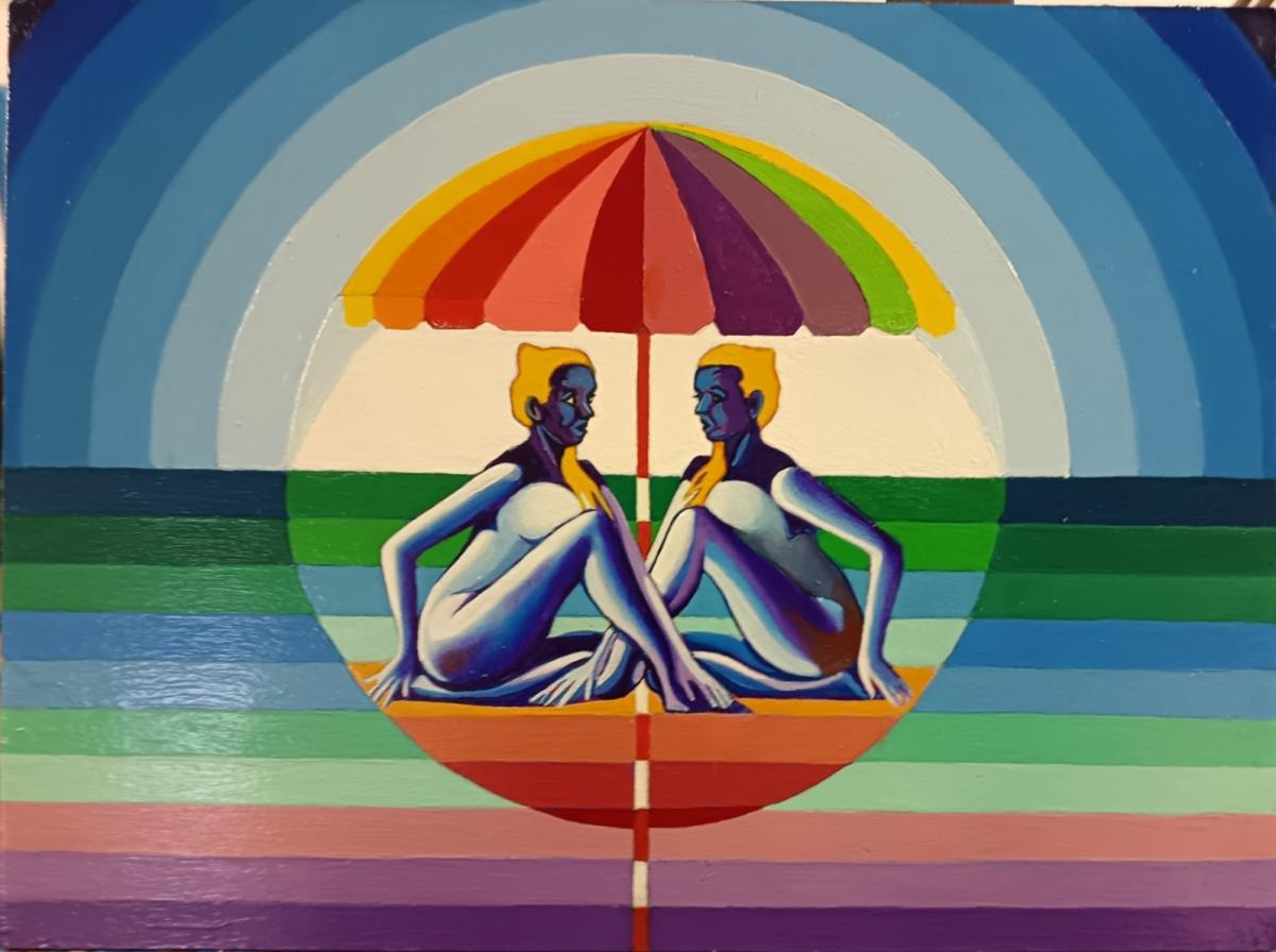 Coppia di bagnanti conversano prigioniere di un'atmo-sfera onirica