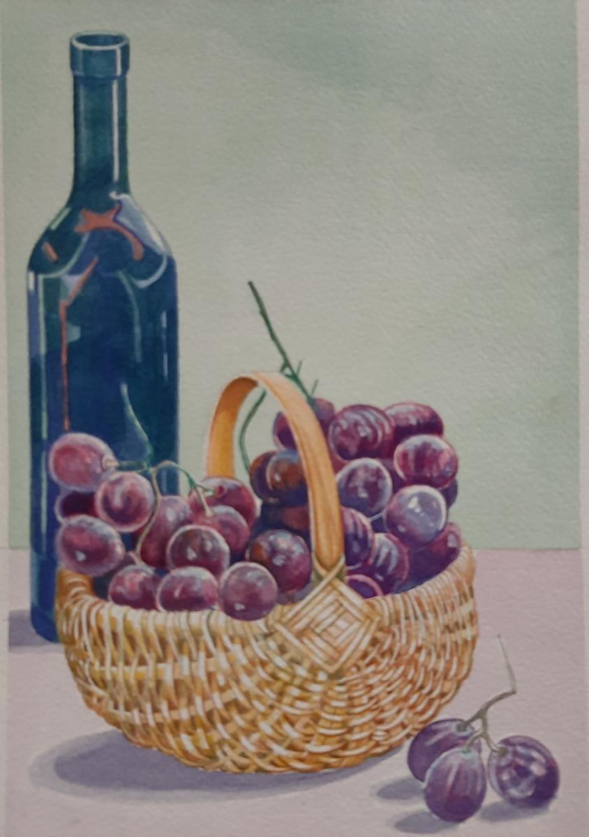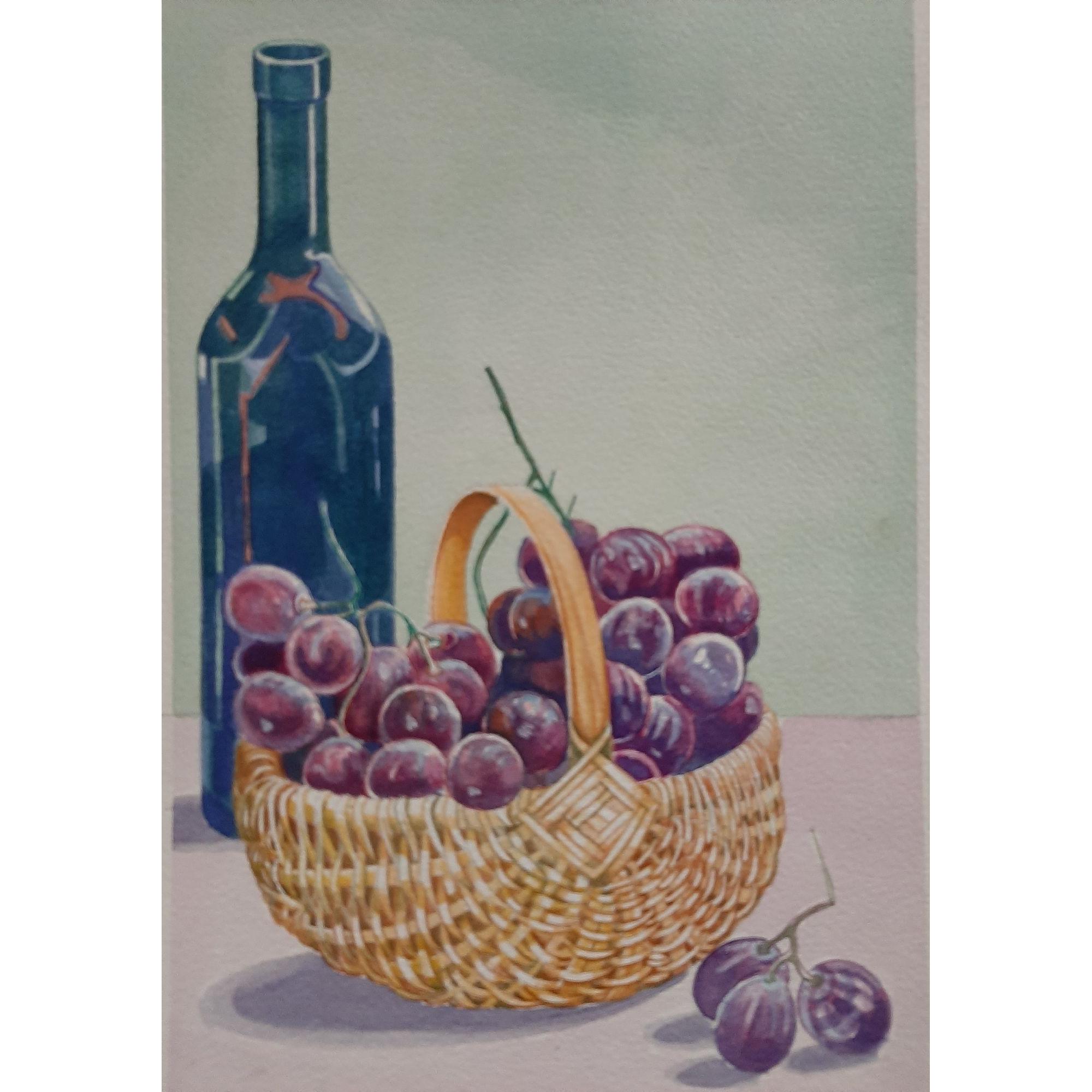 Cesto d'uva con bottiglia