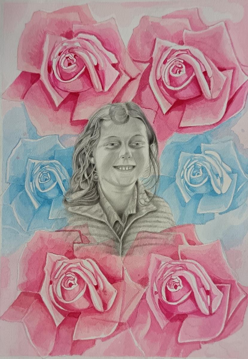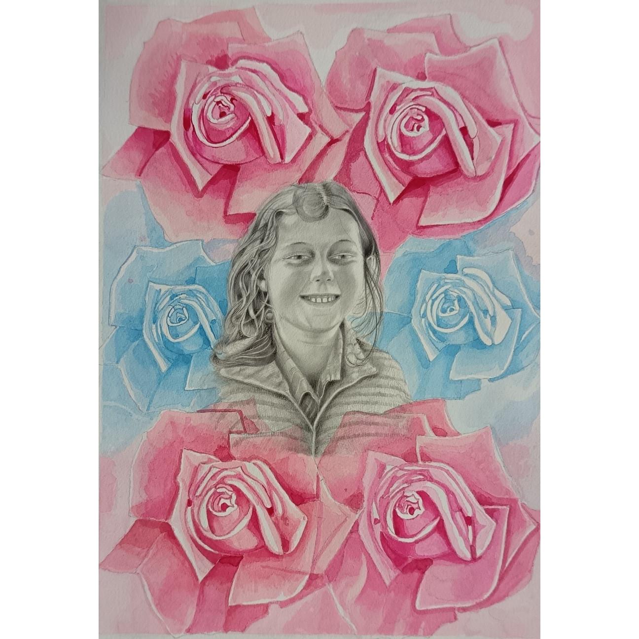 Stampa ritratto a matita su carta canson integrata da acquerelli