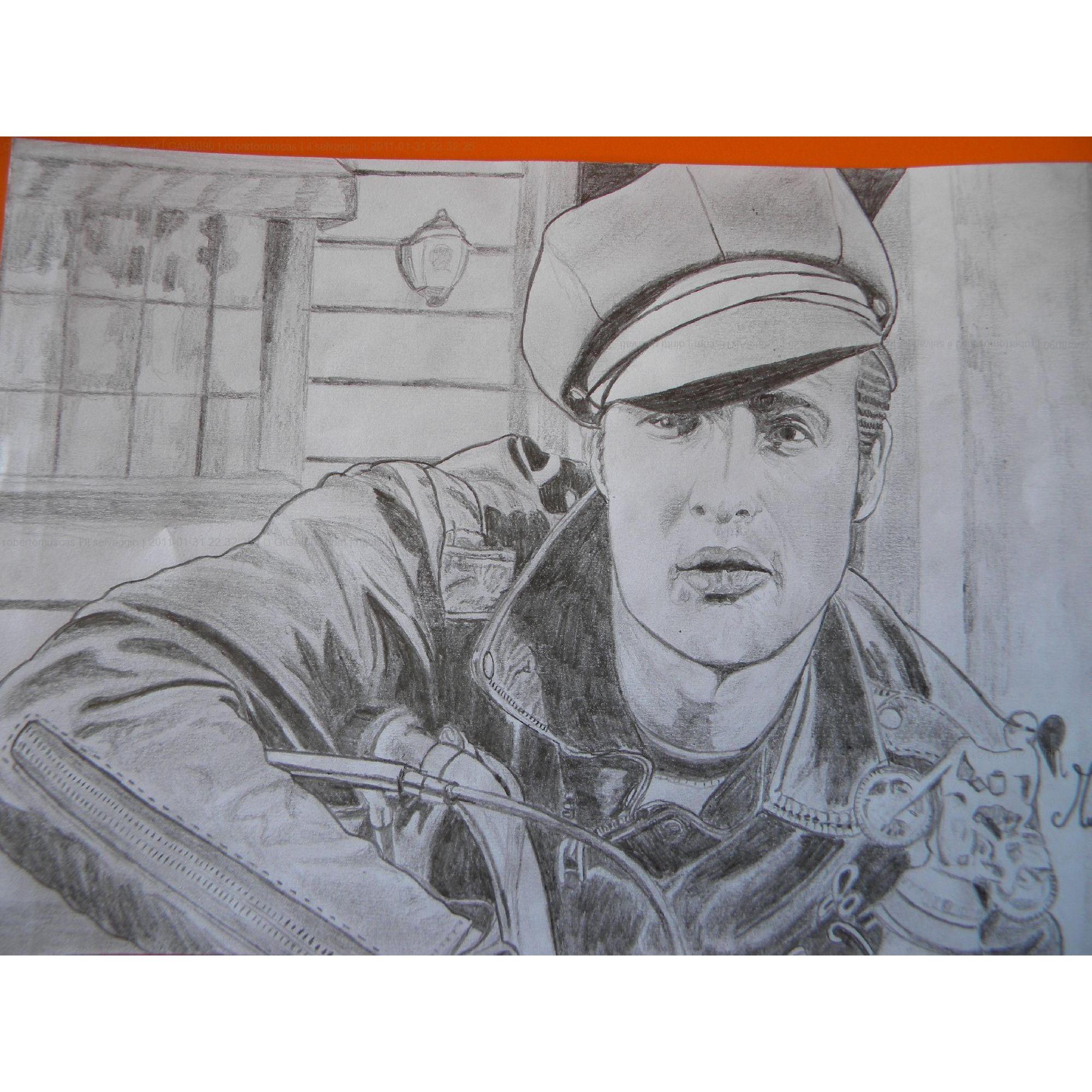 in ricordo di un personaggio che ha fatto la storia del cinama il selvaggio jimmy e la sua moto (marlon brando)realizzato a matita su foglio a4.