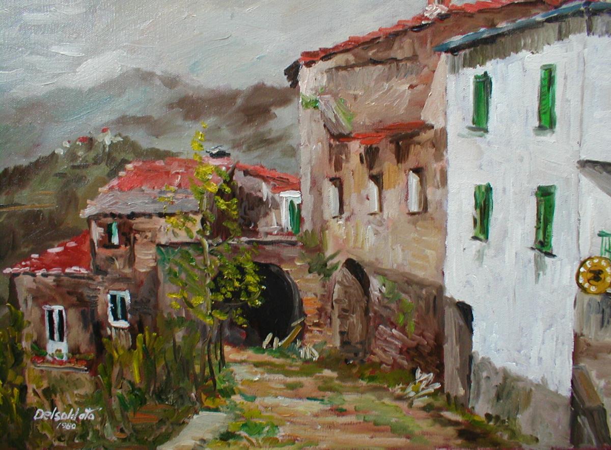 Romano Delsoldato non dipinge nel chiuso di uno studio, ma all'aria libera, a contatto diretto con gli alberi, i fiori, il cielo, il mare, il vento, i greti sassosi dei torenti, i sentieri pieni di sole, la pace raccolta dei borghi della sua terra. Nessun virtuosismo quindi, nessun artificio nel suo linguaggio, ma soltanto immediatezza sorretta da un vigile senso della coerenza artistica.