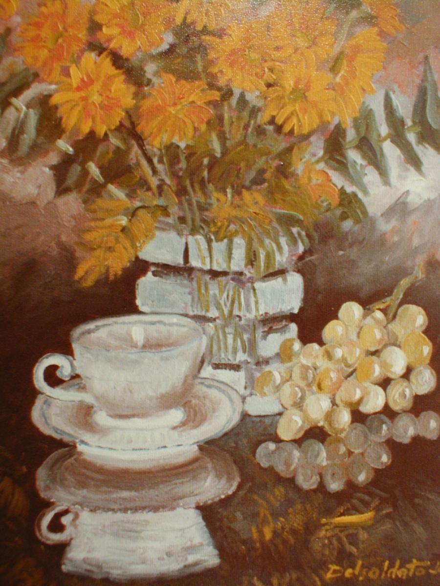 COMPOSIZIONE CON UVA E TAZZA
