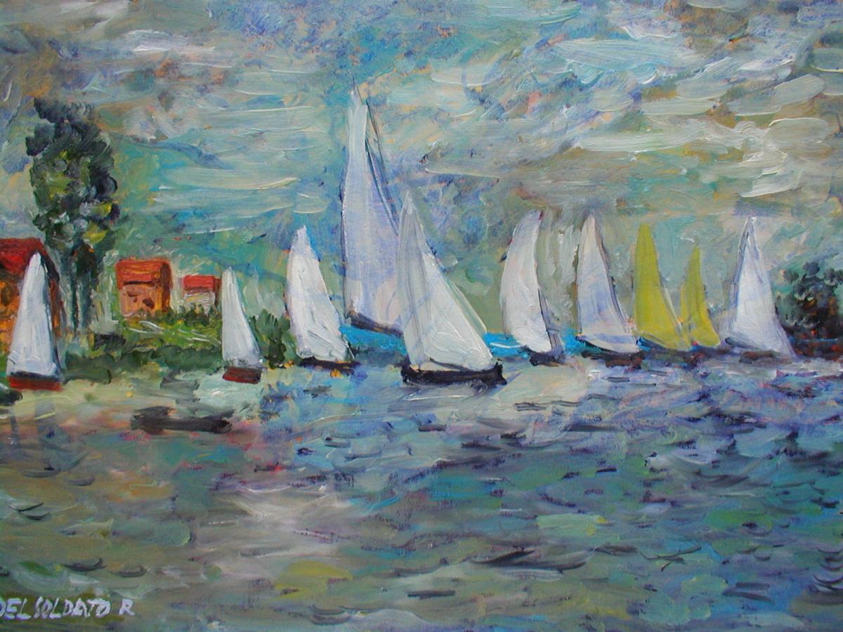 COPIA DA: REGATE AD ARGENTEUIL CON CIELO COPERTO DI CLAUDE MONET