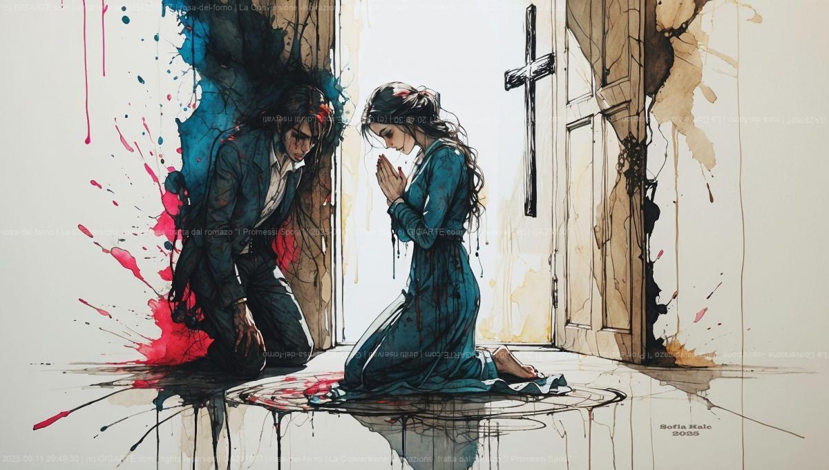 Tra le opere selezionate figura anche “Il momento della redenzione” di Sofia Hale (Rosa Del Forno), che reinterpreta il celebre incontro tra Lucia e l’Innominato come simbolo di luce e trasformazione interiore.
