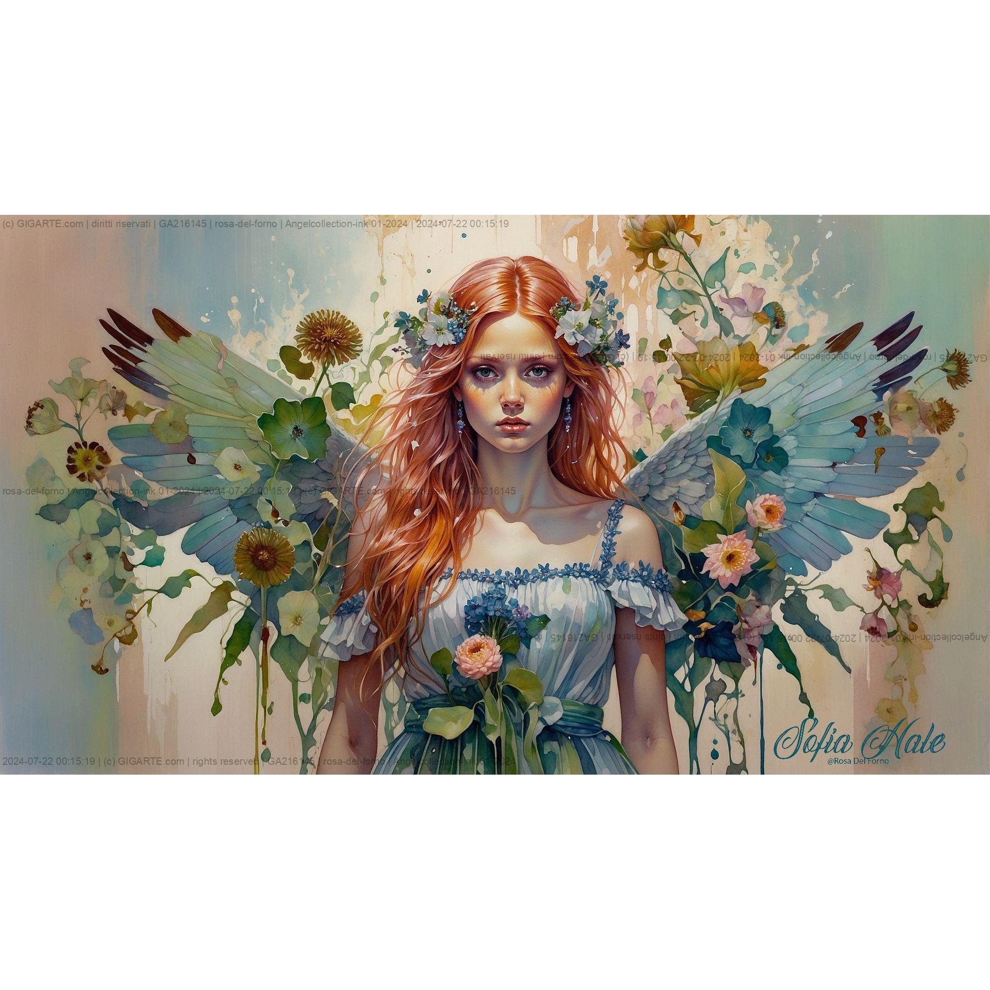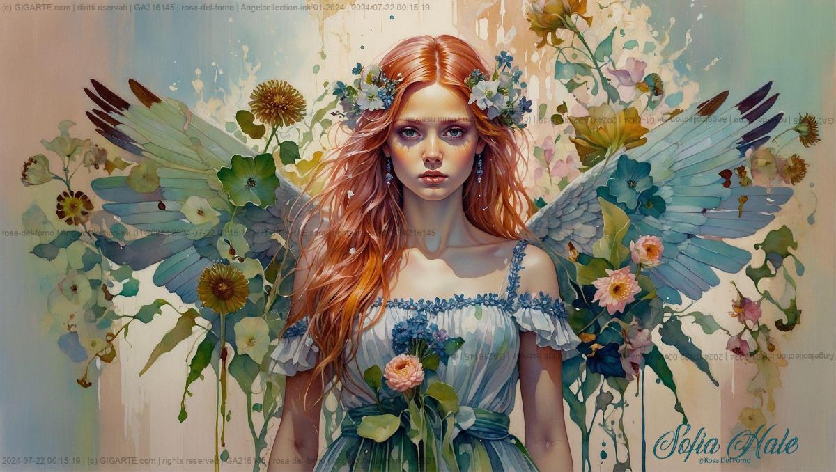 Si certifica che l'artista Rosa Del Forno In Arte Sofia Hale lunedì 22 luglio 2024 ha archiviato la foto dell'opera GA216145 dal titolo "Angelcollection-ink 01-2024"