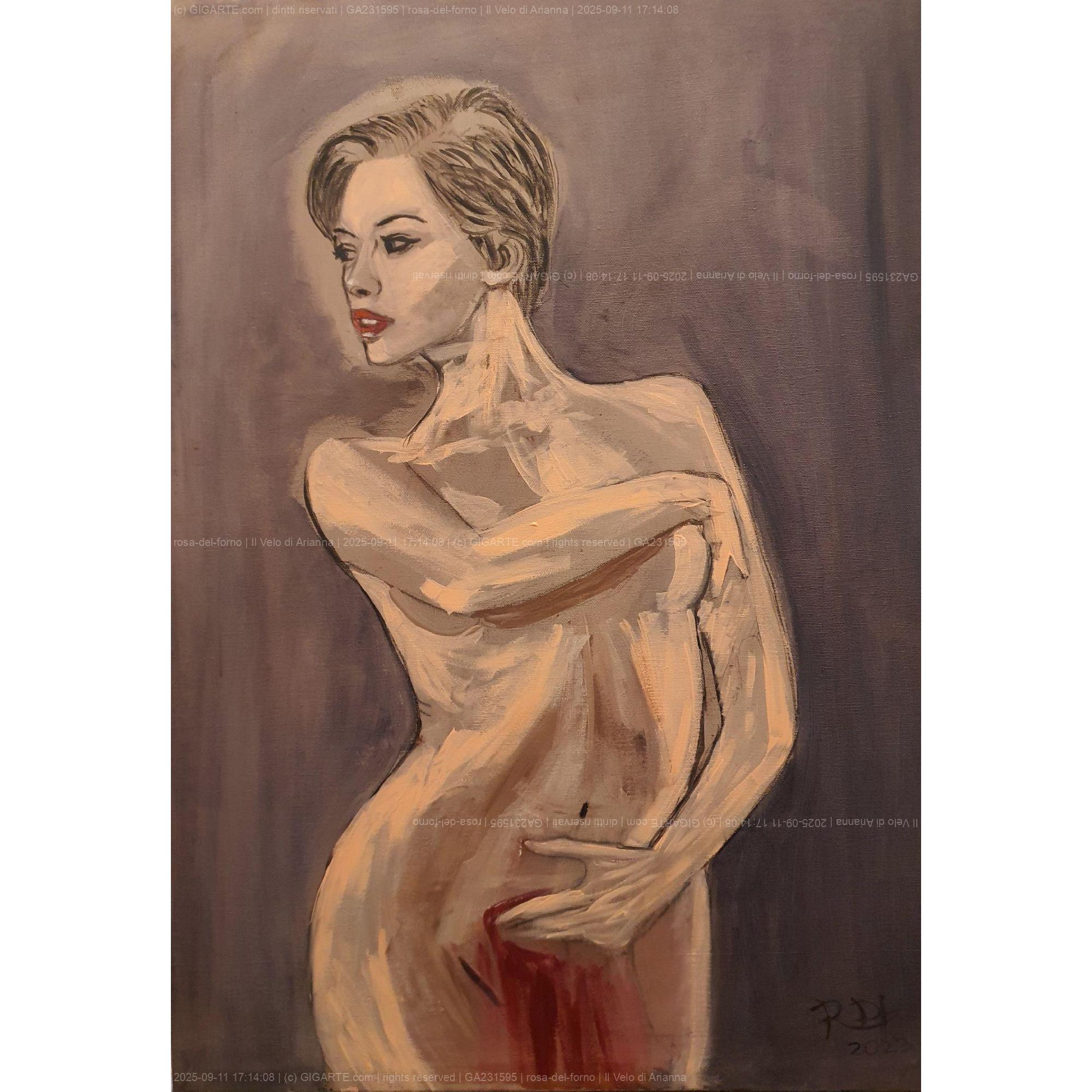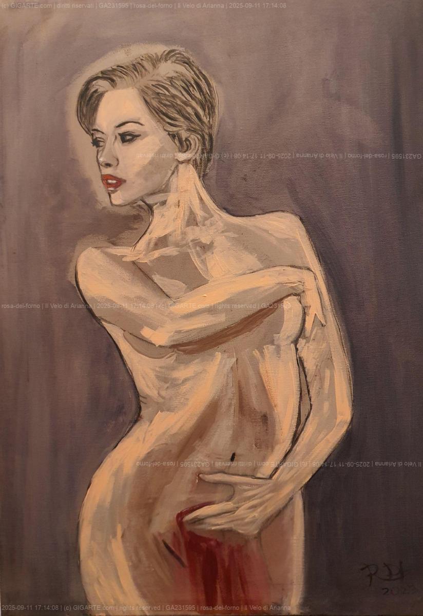 "Il velo di Arianna" ne è un esempio. Anche in questo dipinto ritorna la carica espressionista del corpo femminile che allontana lo sguardo dallo spettatore alla ricerca di un oblio formale che si abbandona nel presente.