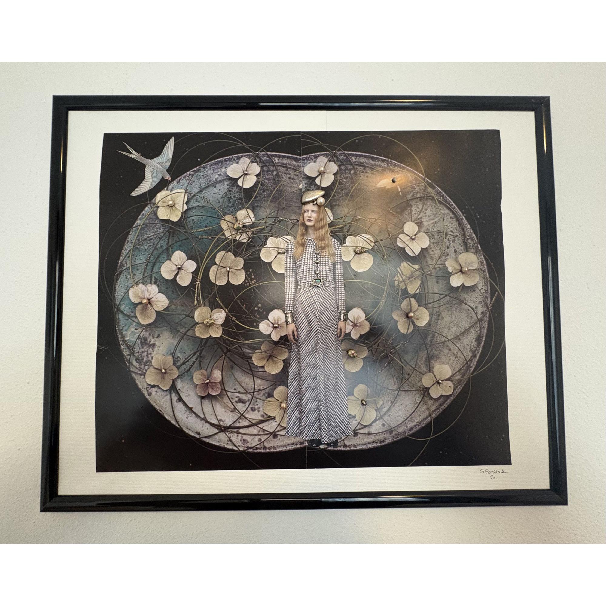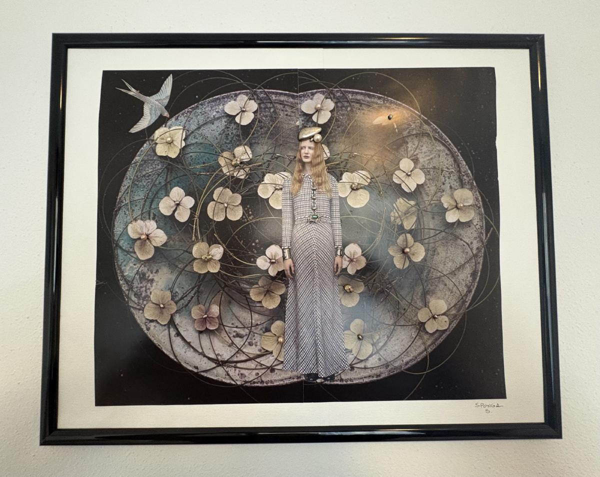 Collage su carta con utilizzo di perline cloisonnè e e dettagli in argento