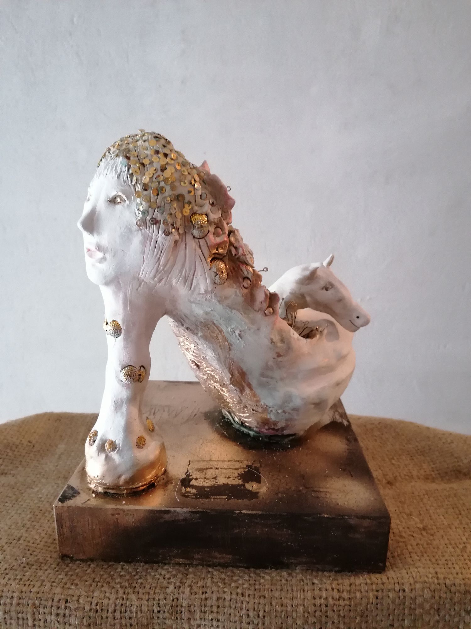 Tecnica mista, Scarpa in Argilla con base di marmo, 2020
