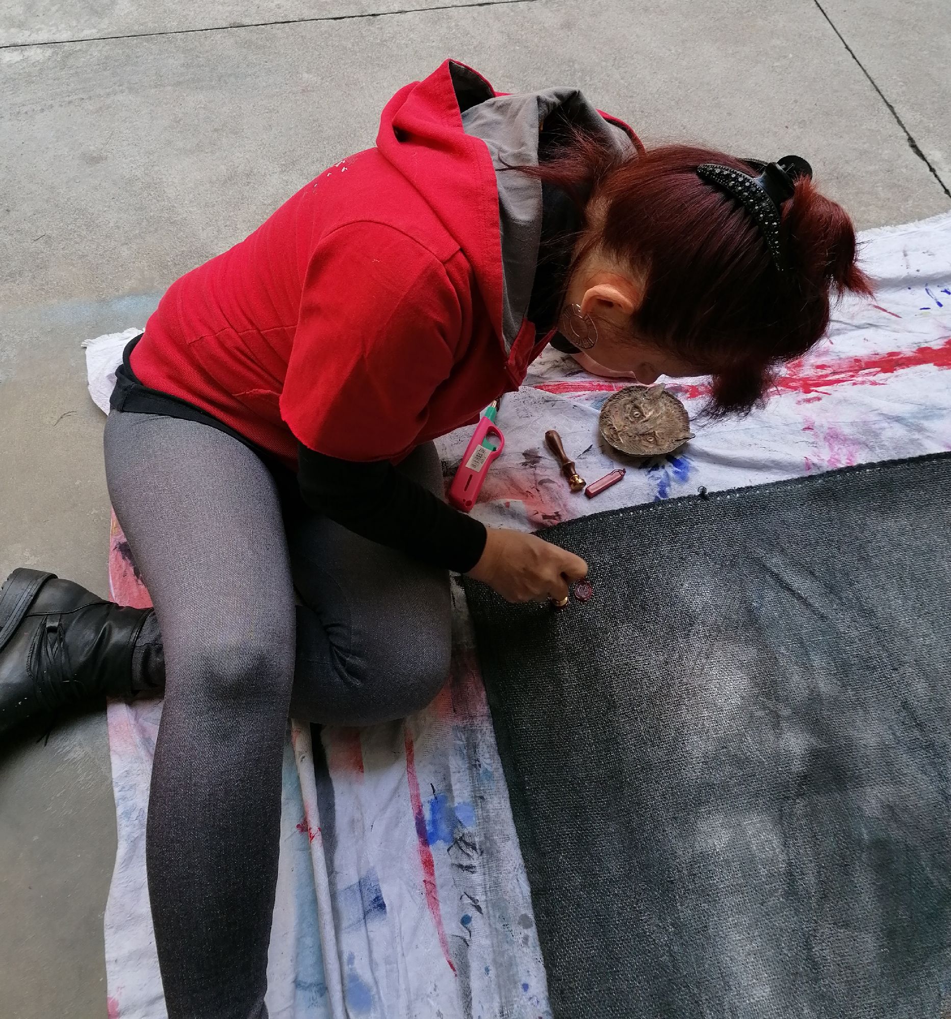 Pigmenti, nero antracite, argento, oro ricco macer, Sacco iuta Vintage del caffè, 2021