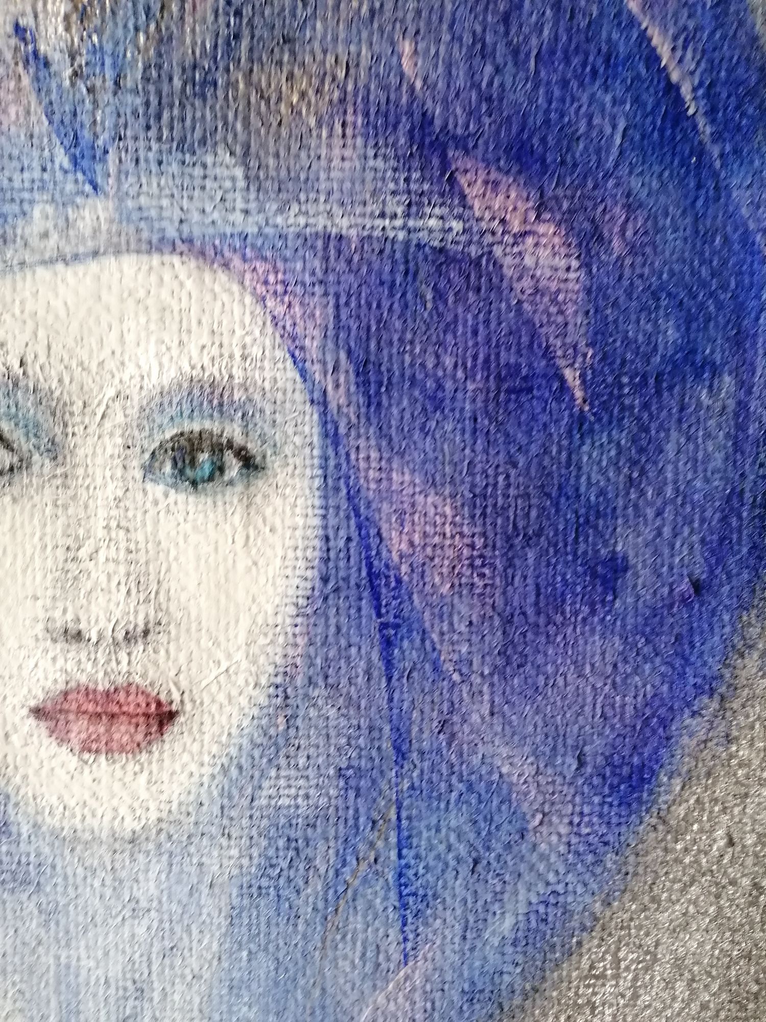 - Tecnica: Pigmenti argento pallido macerato, blu