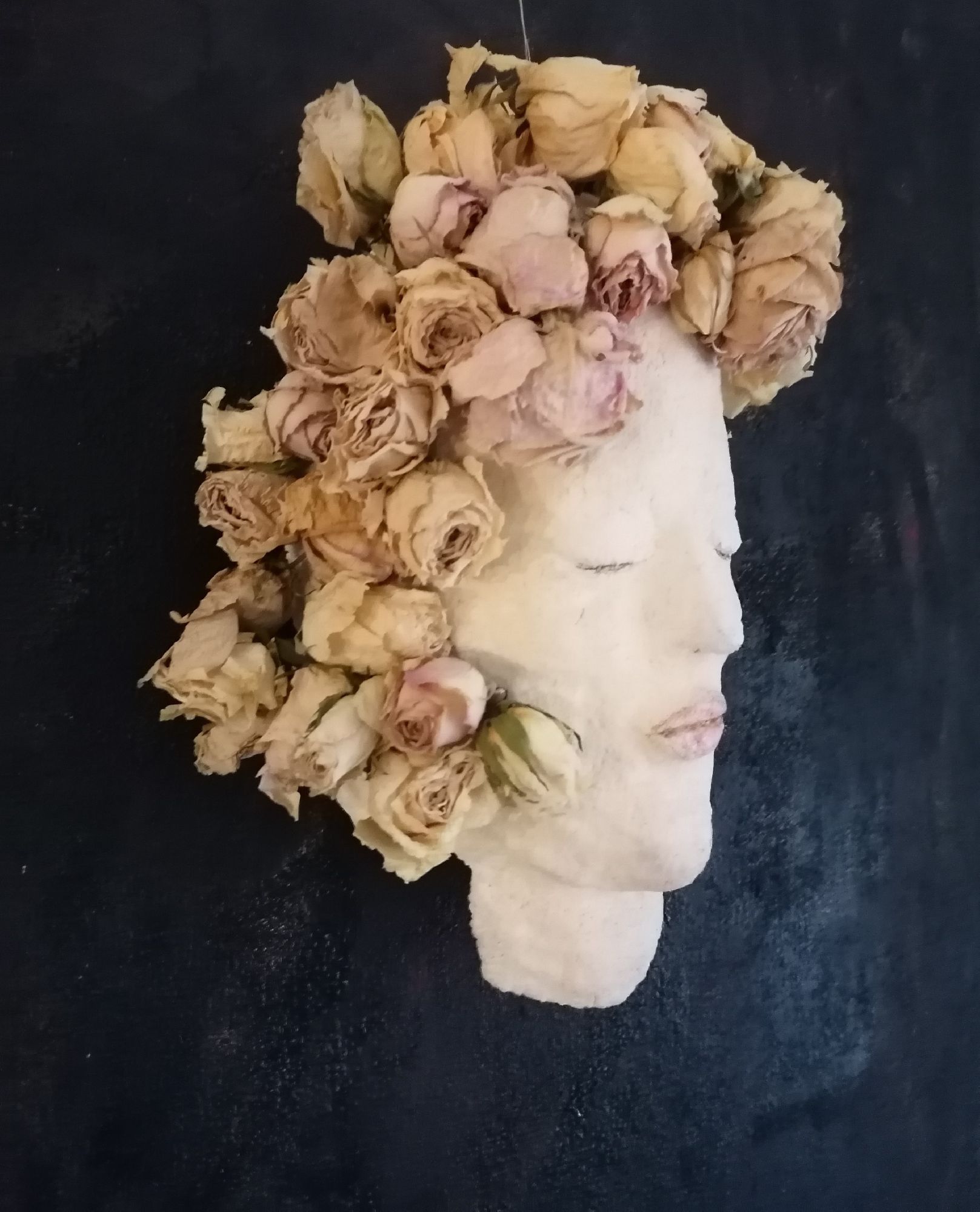 Pigmenti- avorio-pastelli- Rose essiccate, Sculture in Cartapesta, 2022