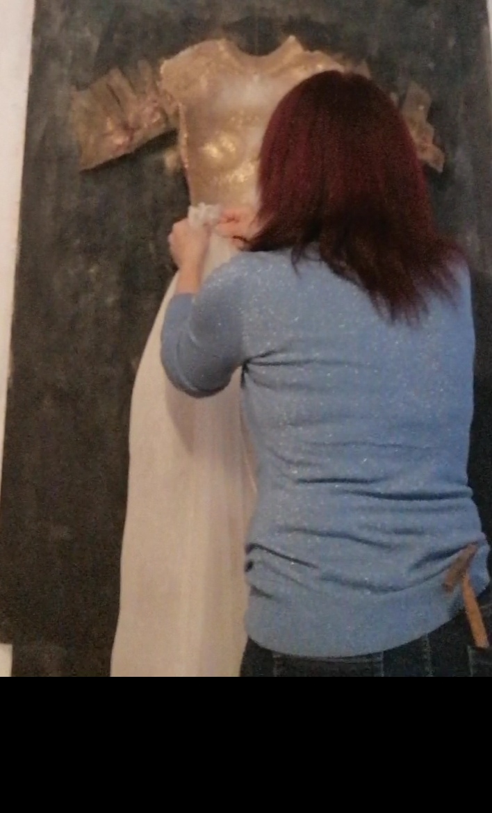 - Supporto: busto in cartapesta, vestito lino grezzo.