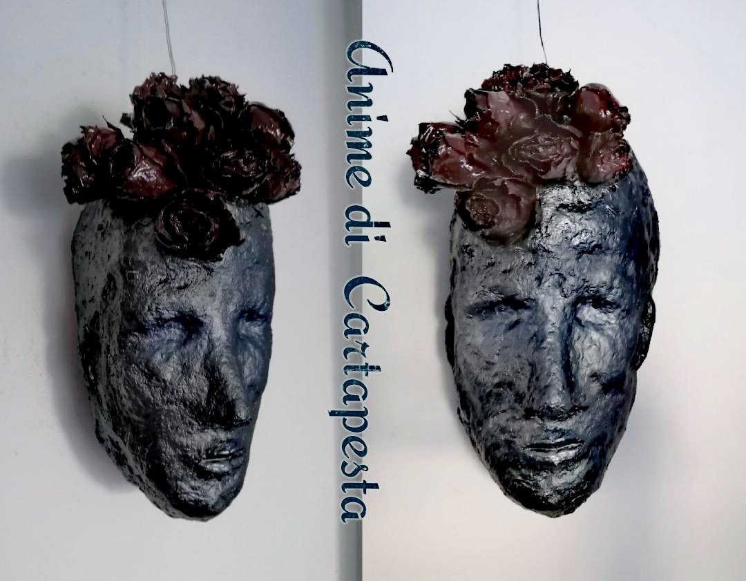 Pigmenti-nero antracite- rosso porpora rose essicc, Sculture in Cartapesta, 2023