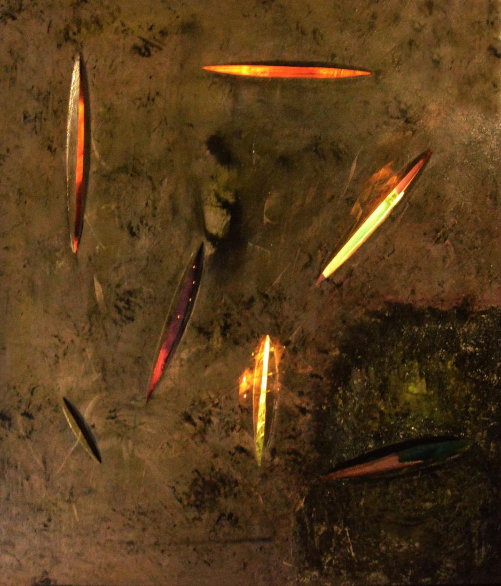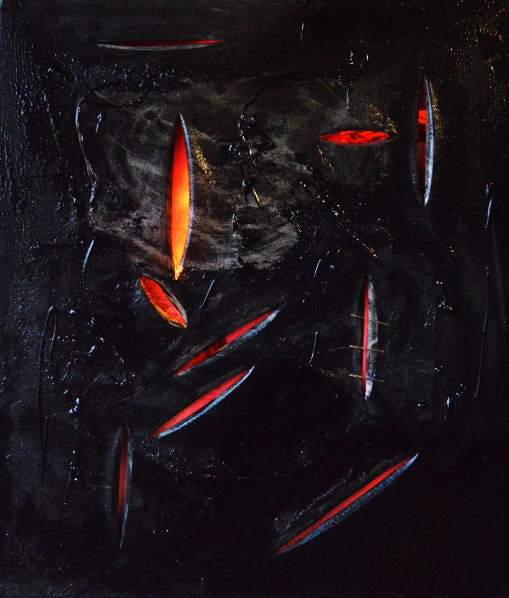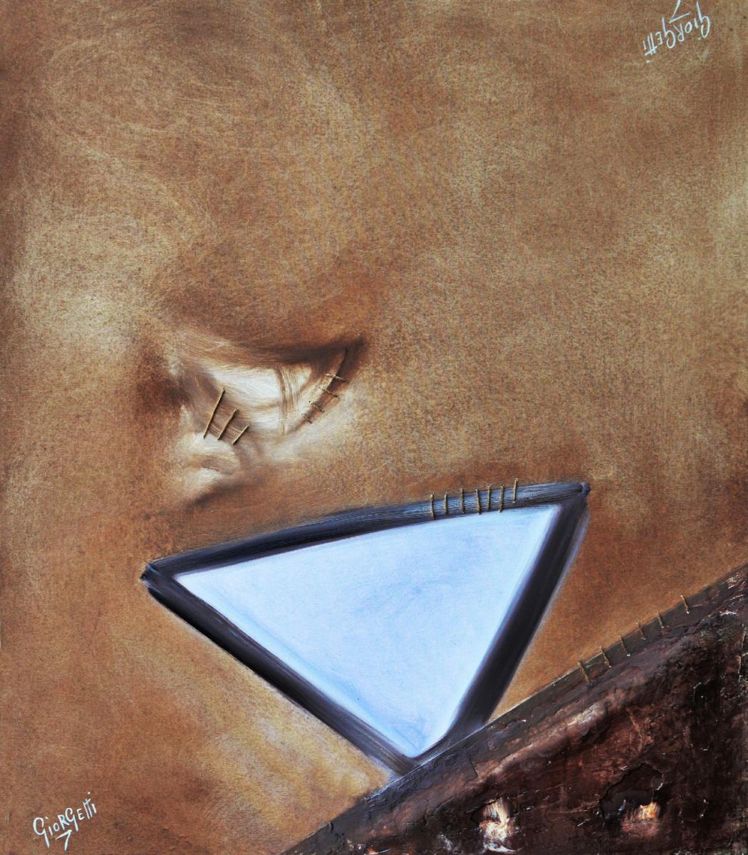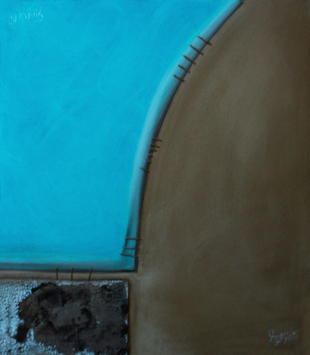 Primo progetto d'arte a capitoli da 3 opere l'uno, proprio come un romanzo, infatti il catalogo del progetto è un vero e proprio Romanzo/Catalogo autobiografico sulla vita dell'artista scritto da Antonella Tamiano. Il terzo percorso dell'artista Alessandro Giorgetti parte da un nuovo connubio tra materico e non. Point de Suture è un progetto artistico di forte impatto emotivo, poiché raccoglie i pensieri più intimi dell'artista. Le Opere si presentano come una sorta di autobiografia visiva nella quale, egli, mediante l'astratto narra il suo percorso di vita in maniera del tutto nuova. Forme, colori ,tele in puro cotone create artigianalmente, fili di juta, impasti cromatici che ripercorrono lo stile rinascimentale, divengono la vibrante e fetale effige terrena, umana dei pensieri dell'artista. Point de Suture è un progetto del tutto innovativo nel suo sviluppo creativo in capitoli. Le Opere d'arte si presentano come se fossero le pagine di un libro, perché Giorgetti è così che sente la sua vita e quella dell'uomo in generale, ovvero, pagine di un libro suddiviso in capitoli. L'artista, mediante colori, forme ed elementi materici ci descrive il suo tempo che non vuole essere rappresentato ed identificato come passato e presente, ma come un unico periodo che tende a modificarsi ed acquistare nuove forme. Le misure delle tele,70x80, (periodo di formazione della sua vita) non sono un caso, divengono l'eco di un passato che Alessandro Giorgetti non definirà mai un tempo remoto, perché percepito come un unico istante, assoluto che si gravida continuamente. Il suo passato e presente sono visivamente uniti nella tela mediante i punti di sutura. I punti delicati, candidi, raccolgono tutta la filosofia Giorgettiana legata al tempo e alle sofferenze a cui spesso l'uomo è costretto ad imbattersi nel travagliato percorso della vita. La sutura ci indica che il passato e il presente non sono due periodi distinti, ma un solo tempo che si arricchisce con il confluire degli eventi, esattamente come un libro che si evolve in capitoli, dove la trama ad ogni capitolo si fa sempre più fervida e ricca di elementi compreso il colpo di scena finale. Le Opere in ogni sua realizzazione non solo rappresentano gli eventi della vita dell'artista, ma evidenziano come essi non vogliono assolutamente scindersi tra loro, ma plasmarsi l'un l'altro esprimendosi,mediante la sutura, in un singolo momento che si arricchisce costantemente di nuove sfumature. Visivamente però, l'artista astrattista, ci racconta che per arrivare a questo arricchimento, creatore di nuove forme e colori vitali, bisogna talune volte superare momenti dolorosi. I punti di sutura, infatti, rappresentano anche i suoi intimi periodi funesti, difficili che si traducono in sacrifici, in sfide continue e lotte per il superamento costante delle avversità di varia natura. Tuttavia egli ci descrive, mediante la sutura, questo dolore, quasi carnale, come un dolore dolce, delicato che pare tagliarci in due, ma che poi finisce per arricchirci, migliorarci e pertanto dare sollievo. La sutura, quindi diviene anche l'emblema di qualcosa che unisce per lenire e fecondare la nostra vita. Pertanto è un dolore che viene vissuto come piacere, inteso come atto, come movimento necessario per creare nuove forme, nuove dinamiche di arricchimento della propria vita. Un'assenza di dolore, per Giorgetti equivale all'immobilità delle cose e quel dolore che avvolte in vari capitoli della nostra vita fa il suo ingresso, l'artista ci suggerisce di viverlo come una costante rinascita nella nascita, così da poter catturare la nostra vita appieno e vivere il nostro tempo come unico ed esemplare. Critico d'Arte Mattea Micello