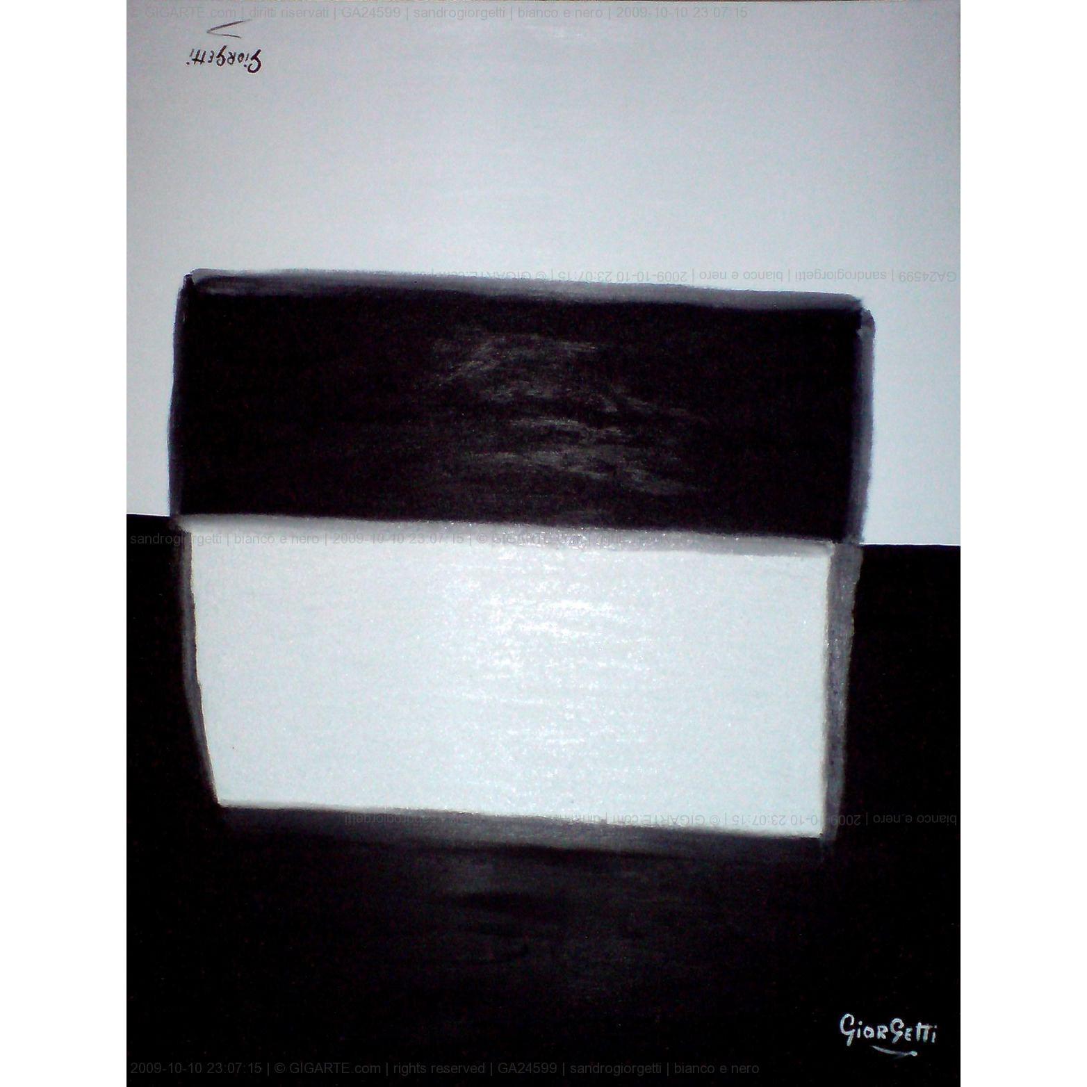 Olio su tela vergine con sabbiatura in rilievo dim.70X90. Sfondo nettamente contrastato. Il bianco puro e pieno di energia che riflette tutti i colori dell'ambiente ed il nero cupo e suggestivo che assorbe essi annullandoli e soffocandoli; il tutto sovrastato da entità fluttuanti e corpose (olio miscelato a sabbia), dove la purezza occupa una superficie più vasta, che si contrastano a vicenda fino a fondersi agli estremi in varie tonalità di grigio che non può più scomporsi. Una sorta di dubbi paure ed incertezze verso gli eventi del futuro che celano misteri sulla sorte e lo sviluppo armonico della nostra umanità. Grande particolarità ed unicità 'di tutte le opere di GIORGETTI è l'up-down, infatti, sono firmate da entrambi i lati e concepite per coinvolgere l'ottica soggettiva dello spettatore che diventa a sua volta creatore dell'opera stessa. Dice GIORGETTI:’Il momento più brutto della creazione di un'opera è la firma, perché lì finisce il mio rapporto personale ed intimistico con essa. ‘