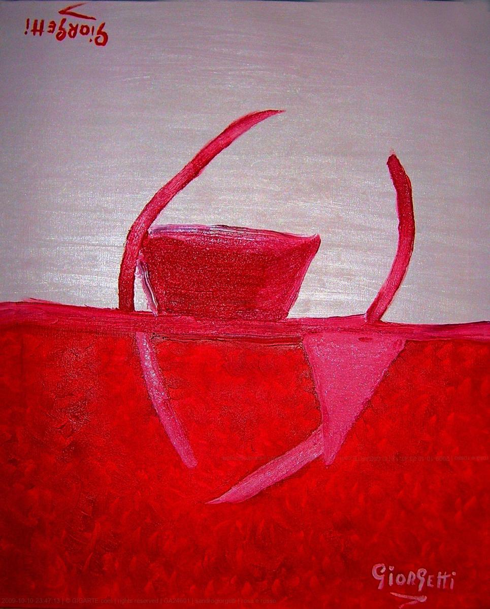 L’uomo contenitore della vita e la donna tentatrice e simbolo sessuale, legati da un orizzonte e da una forma che ricorda un cuore aperto. Un cuore che spinge le arterie verso nuove esperienze e freschi intensi piaceri che tengono vivo il desiderio, il sentimento, la passione ed il ritmo cardiaco. AMORE IL SENTIMENTO FULCRO DELL’ESISTENZA UMANA.. Le sue opere UNICHE AL MONDO hanno la caratteristica di essere firmate in due lati per dare la possibilità allo spettatore di partecipare all'opera scegliendo a proprio gusto il lato di esposizione... idea geniale che lo rende il più vicino artista al Grande Mark Rothko morto nel 1970 anno in cui nacque Giorgetti. L'idea nata per caso durante una visita alla mostra di Rothko dove una delle sue opere fu posizionata al contrario per errore. 'Non vorrei mai che accadesse a me', disse Giorgetti e da quel momento in poi tutti i suoi quadri vennero concepiti in up/down.