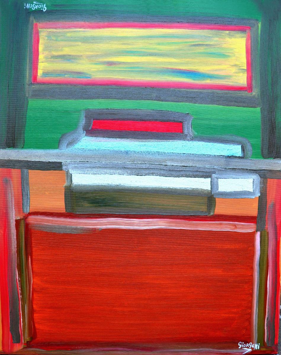 Espressione astratta e geniale della macchina infernale che in futuro teletrasporterà le particelle umane. Un futuro molto lontano apparso in sogno e messo in pratica di getto in una mattina d'estate. Le sue opere UNICHE AL MONDO hanno la caratteristica di essere firmate in due lati per dare la possibilità allo spettatore di partecipare all'opera scegliendo a proprio gusto il lato di esposizione... idea geniale che lo rende il più vicino artista al Grande Mark Rothko morto nel 1970 anno in cui nacque Giorgetti.