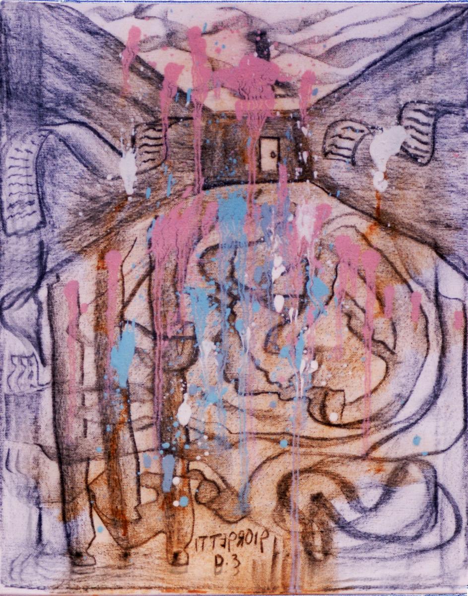 DESCRIZIONI ALLO SPECCHIO (D1,D2,D3,ECC.)MOLTO GENIALI PERCHE' FIRMATE E CONCEPITE PER ESSERE VISIONATE CORRETTAMENTE SOLO DAVANTI AD UNO SPECCHIO. LE OPERE SONO ASSOCIATE SINGOLARMENTE A POESIE SCRITTE DALL'ARTISTA CHE IN QUEL PERIODO ERA ANCORA LEGATO ALLA POESIA E QUINDI ALLA MUSICA.