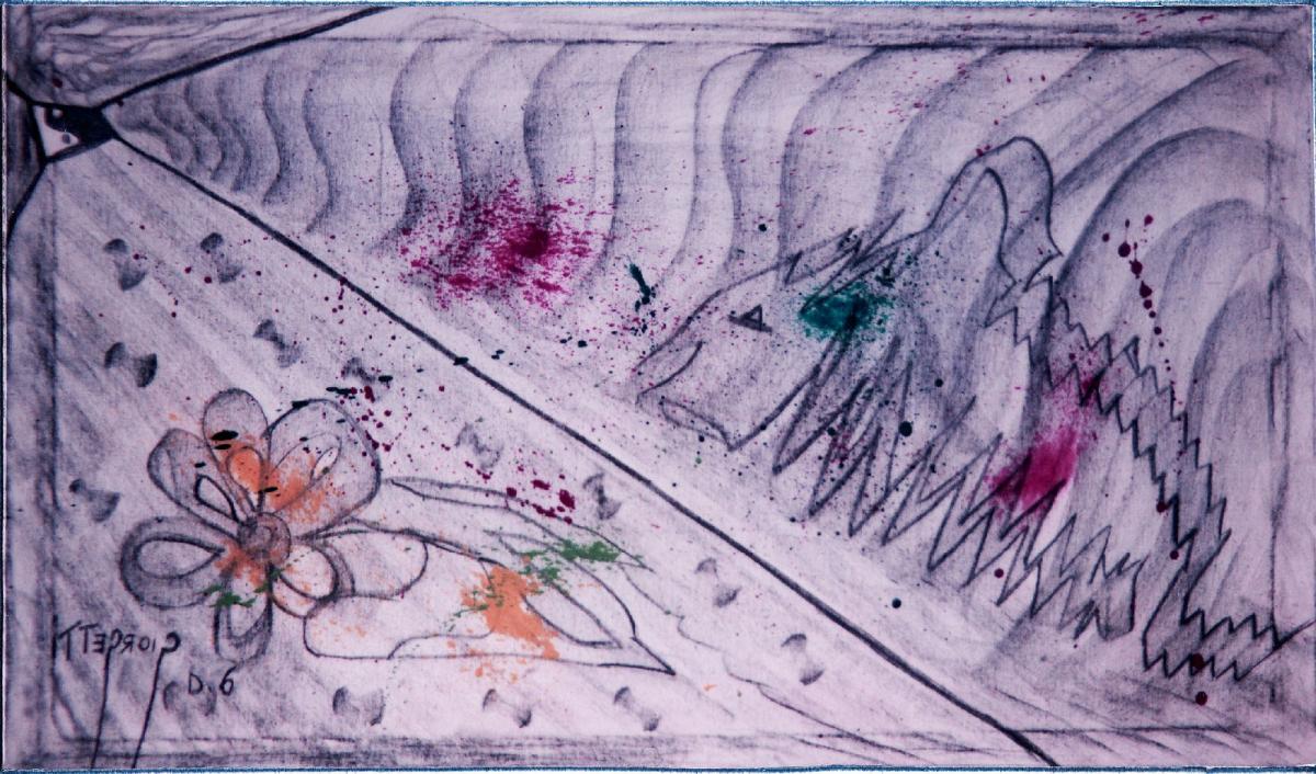 DESCRIZIONI ALLO SPECCHIO (D1,D2,D3,ECC.)MOLTO GENIALI PERCHE' FIRMATE E CONCEPITE PER ESSERE VISIONATE CORRETTAMENTE SOLO DAVANTI AD UNO SPECCHIO. LE OPERE SONO ASSOCIATE SINGOLARMENTE A POESIE SCRITTE DALL'ARTISTA CHE IN QUEL PERIODO ERA ANCORA LEGATO ALLA POESIA E QUINDI ALLA MUSICA.