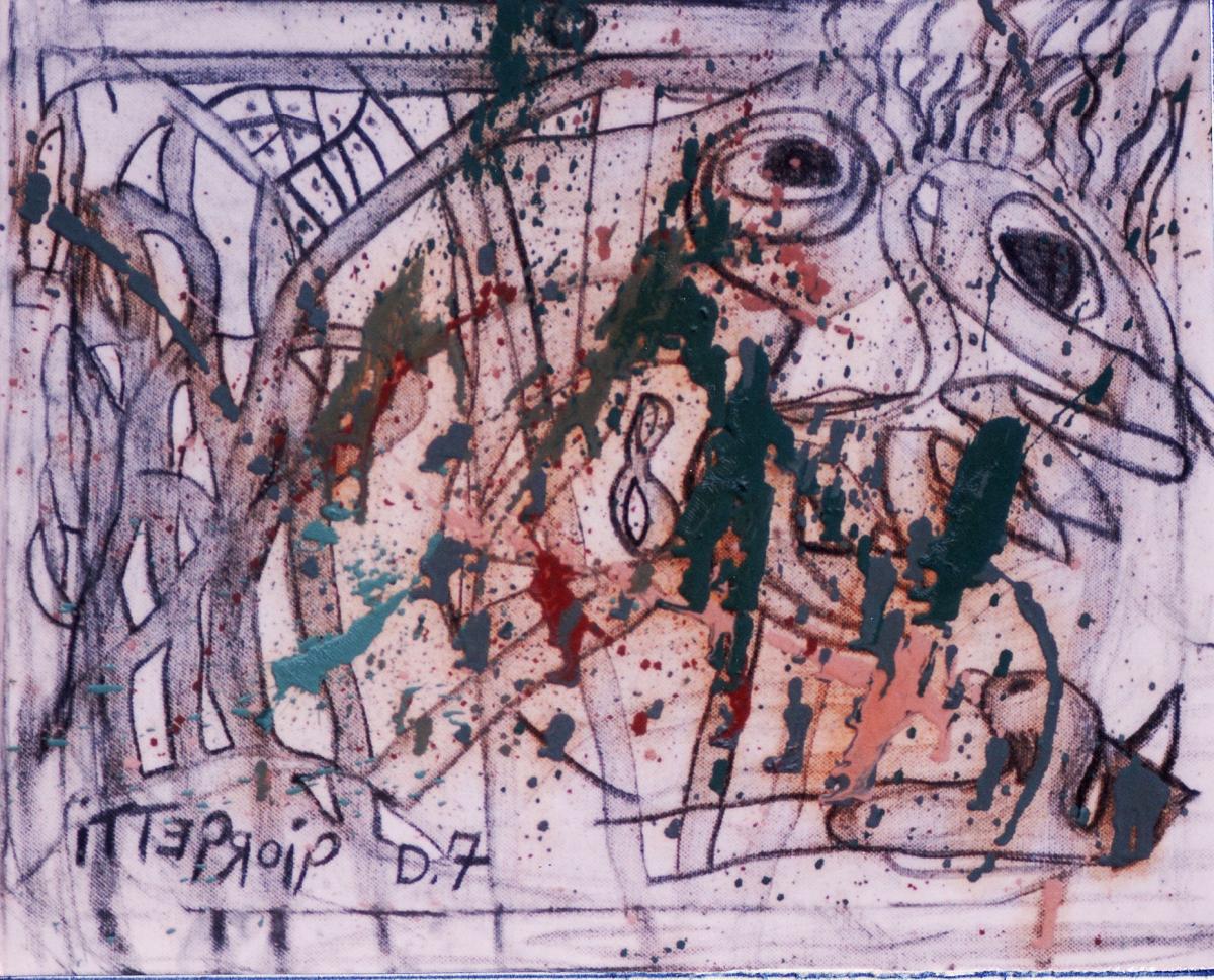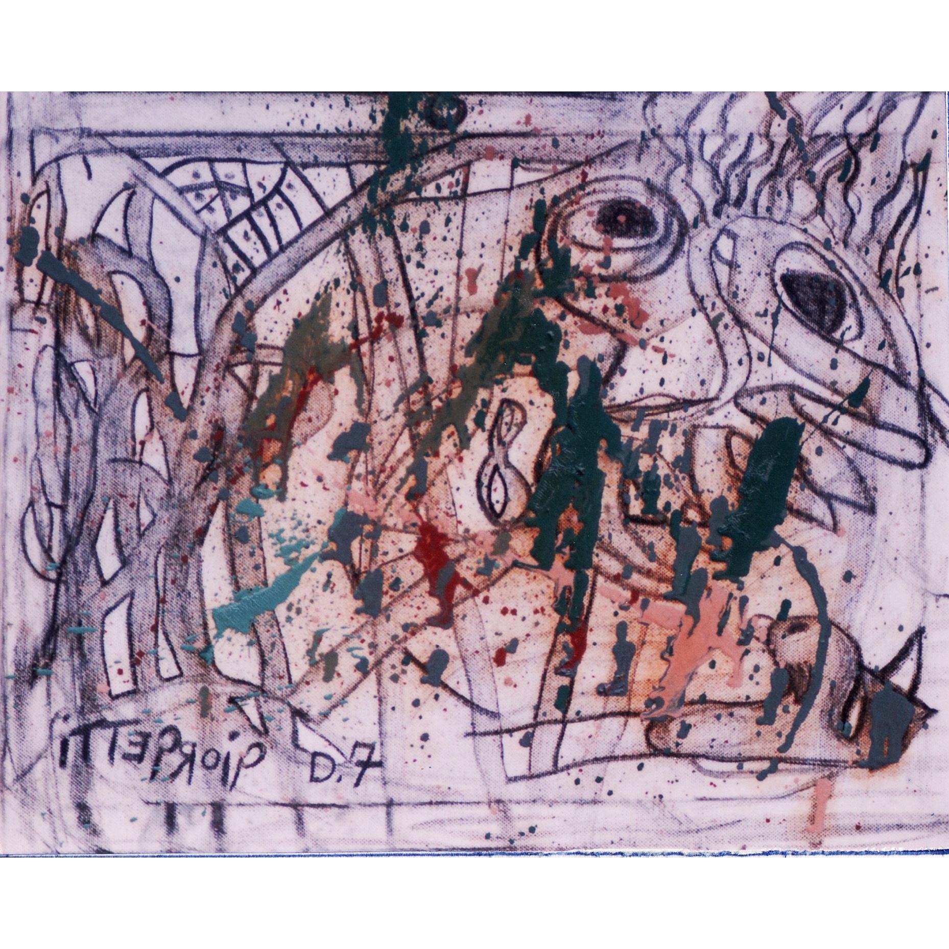 DESCRIZIONI ALLO SPECCHIO (D1,D2,D3,ECC.)MOLTO GENIALI PERCHE' FIRMATE E CONCEPITE PER ESSERE VISIONATE CORRETTAMENTE SOLO DAVANTI AD UNO SPECCHIO. LE OPERE SONO ASSOCIATE SINGOLARMENTE A POESIE SCRITTE DALL'ARTISTA CHE IN QUEL PERIODO ERA ANCORA LEGATO ALLA POESIA E QUINDI ALLA MUSICA.