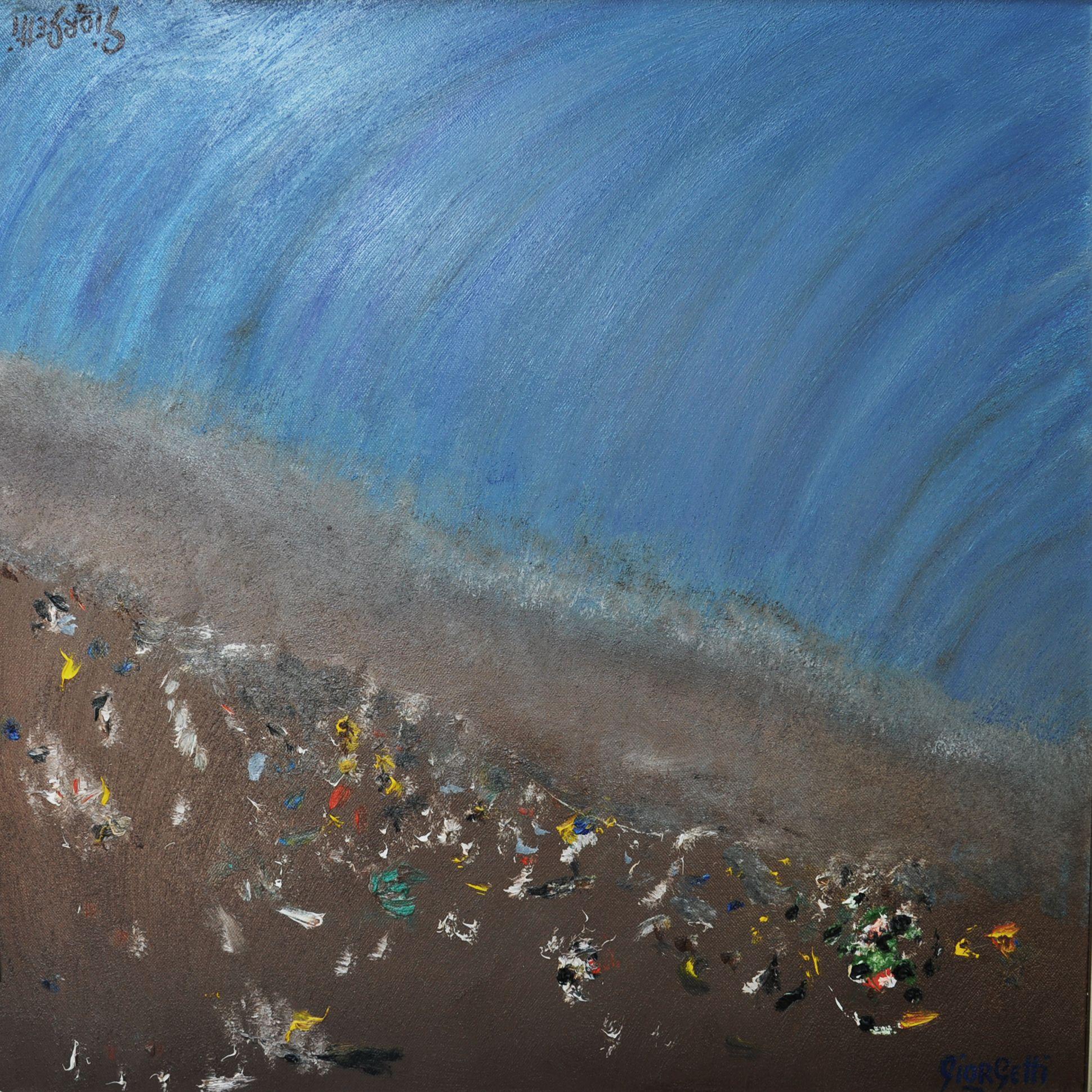 LO TSUNAMI VISTO IN MANIERA ASTRATTA MA ESPLICITA! QUI LA POESIA SI MISCELA CON LA PITTURA CREANDO UN CAPOLAVORO DI UNA SEMPLICITA' ESTREMA MA CARICO DI ANIMA, DOVE IL MARE AZZURRO E LIMPIDO IN SUPERFICIE DIVENTA INCONSAPEVOLMENTE 'CATTIVO' E SPAZZA VIA TUTTO CIO' CHE INCONTRA. UN'OPERA CHE CORONA GIORGETTI COME IL 'POETA DELL'ASTRATTO CONTEMPORANEO'.