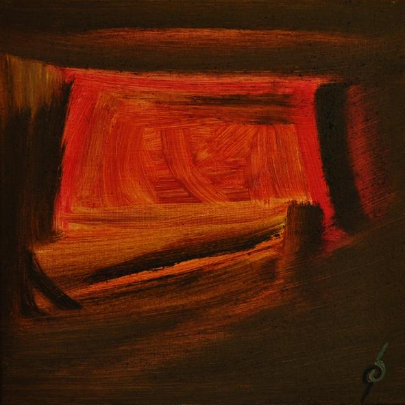 OLIO CON SABBIATURA, Mini tela cotone a trama fine su base cartonata, 2011