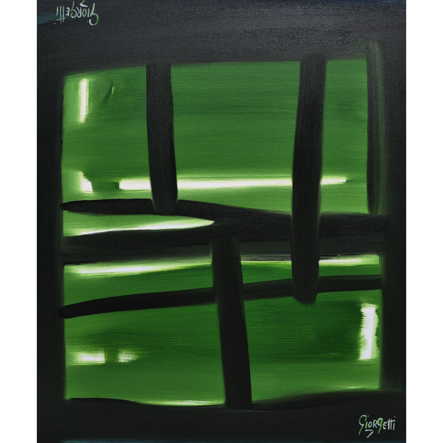 Un'opera dedicata alla psicologia fulcro della vita dell'astrattista siciliano. Un ricercatissimo verde cromaticamente rilassante per il corpo e l'anima attraversato da una luce intensa.