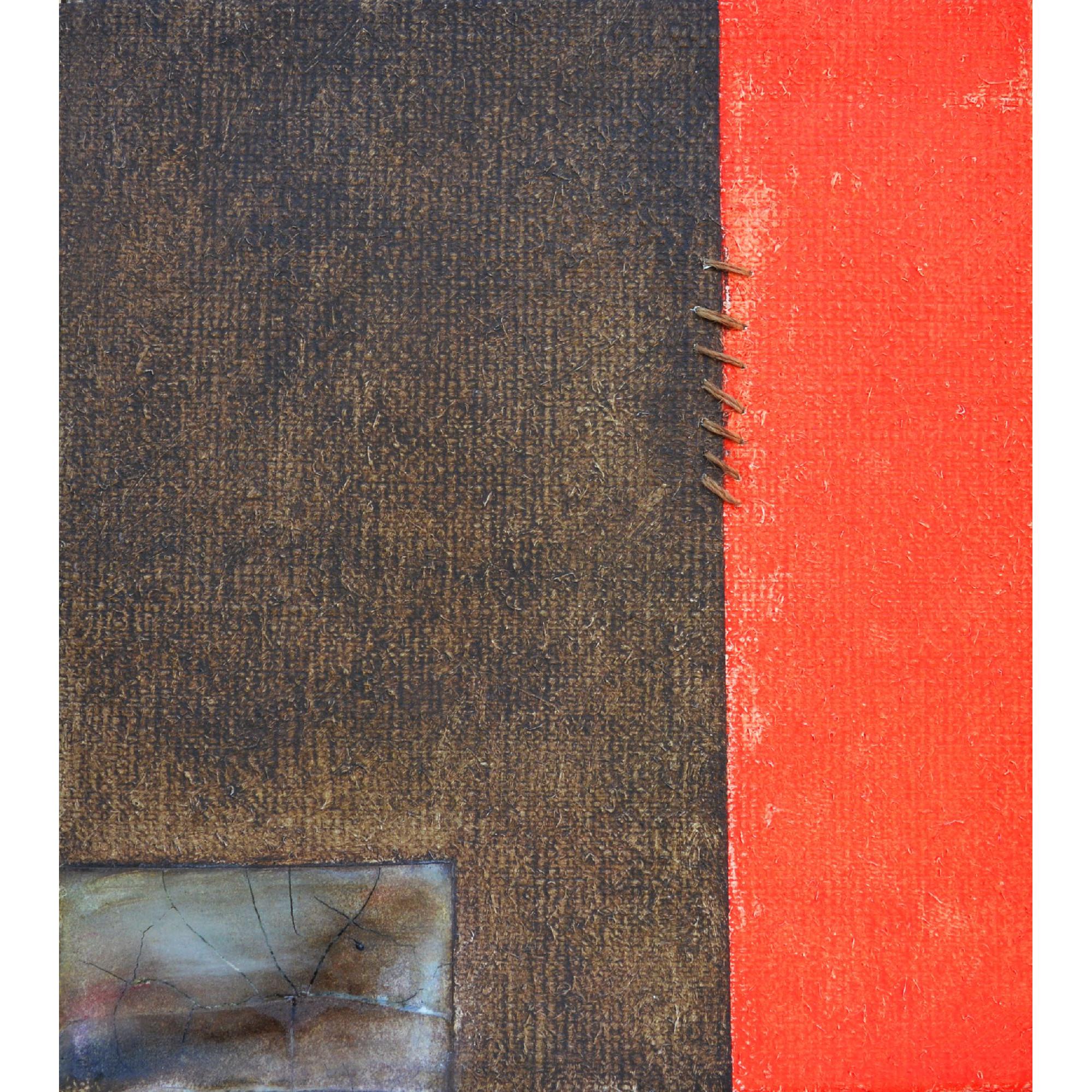 Olio, paste materiche e cuciture filo di juta, Mini tela in juta grezza con cuciture, 2015