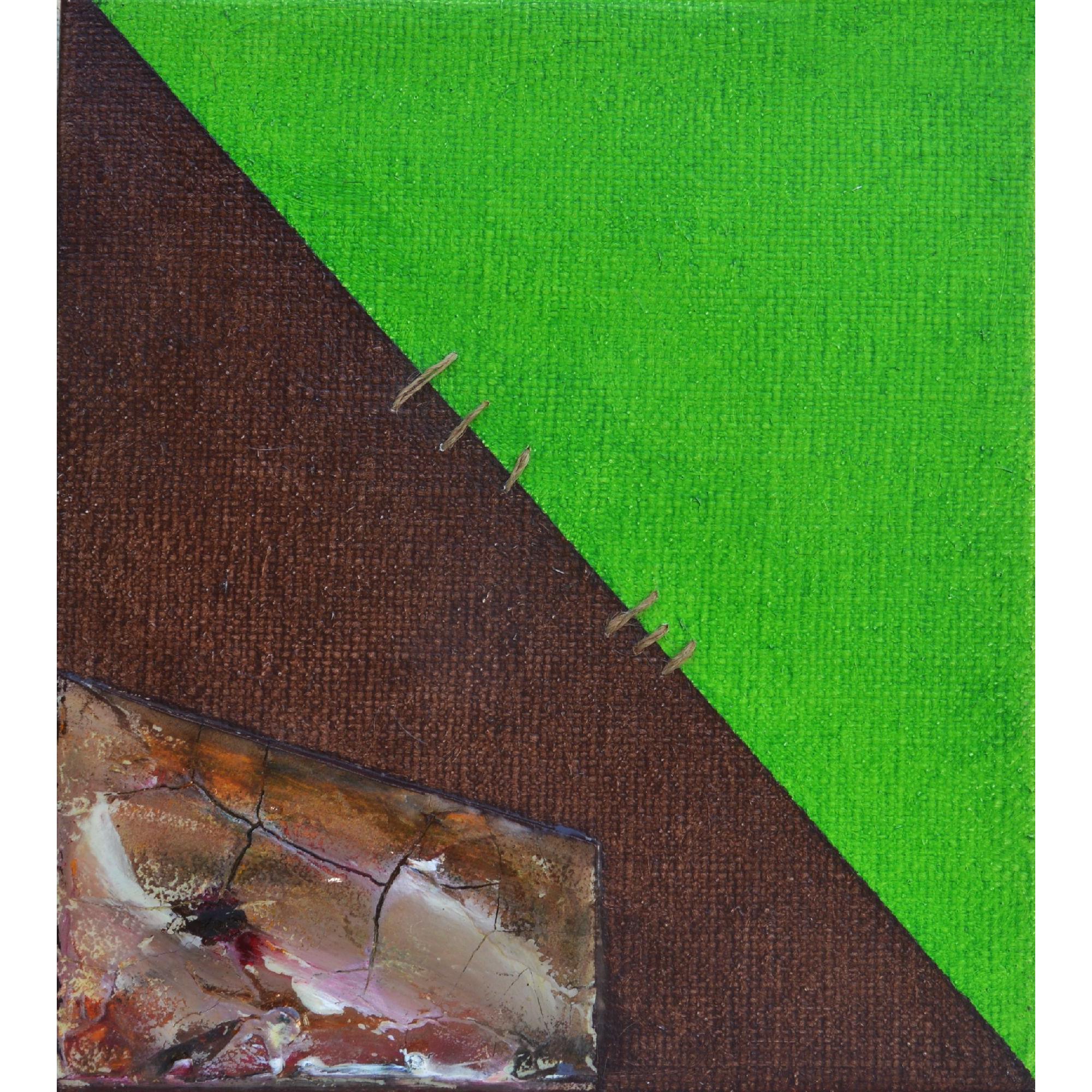 POINT DE SUTURE - Mini Point - 18x20 - Alessandro Giorgetti - Pittura a olio invecchiata con Punti realmente cuciti con juta su mini tela