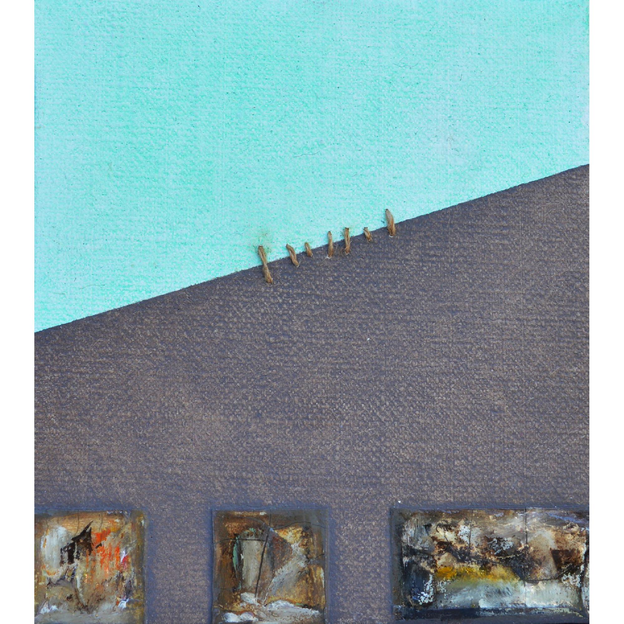POINT DE SUTURE - Mini Point - 18x20 - Alessandro Giorgetti - Pittura a olio invecchiata con Punti realmente cuciti con juta su mini tela