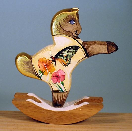 The Baby Little collection of ponies presents the smallest ponies among all the whim series, they are mounted on a small base in precious wood and decorated with watercolor technique and pad on the theme "Flowers and Butterflies", also for this series the application of twenty-two carat gold leaf. The work is unique, numbered, cataloged and signed on a certificate of authenticity.