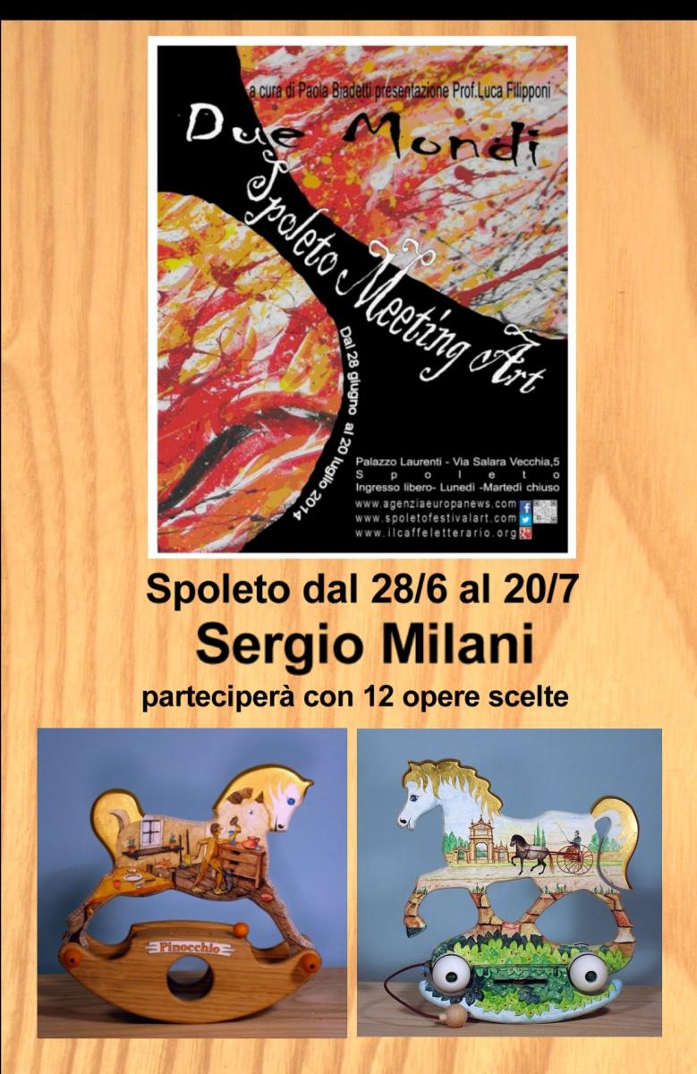La fantasia e la creatività innata di un bambino unita alla sapienza e padronanza tecnica dell'artista. Questo è Sergio Milani, artista-scultore memore dei ricordi infantili improntati nell'animo, grazie anche all'influenza paterna, e per questo autore di opere uniche e singolarii nel loro genere, tradotte in un giocattolo d'arte avente la forma di un cavallino, uno degli oggetti più desiderati e fruibili nel mondo ludico del bambino. Giocando con esso, egli potrà esplorare ed ammirare volando anche con l'immaginazione infiniti paesaggi, luoghi, oggetti e forme di diversa natura, nelle sue innumerevoli versioni decorative e coloristico compositive che seguono tematiche diverse. Questo capolavoro artigianale, antico ma ancora attuale, è curato dall'artista in ogni minimo dettaglio ed è da lui personalizzato in maniera meticolosa tanto nella forma quanto nel soggetto rappresentato. Prendono vita, quindi, dalla mano e dalla inventiva dell'artista linee produttive diverse aventi supporti di diversa tipologia, ma tutte attentamente curate e rifinite come dimostra l'utilizzo della foglia d'oro che rende i suoi cavallini non più solo dei giocattoli ma dei veri e propri oggetti d'arte esclusivi. Questa passione per il mondo dei piccoli unita alla sua competenza, ha coinvolto e impegnato l'artista anche in altri ambiti che riguardano proposte artistiche per i bambini primo fra tutti quello della composizione e progettazione dei giocattoli e nell'impegnativa veste di designer di giochi per l'industria a partire dagli anni '70 in cui la sua abilità e la sua lucida immaginazione è misurata e produttiva ma è sempre finalizzata a realizzare i sogni dei bambini.