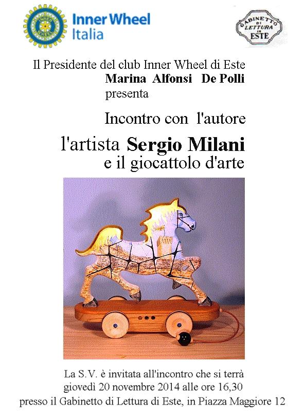 Giovedì 20 novembre 2014 alle ore 16,30 il Presidente del club Inner Wheel di Este, Marina Alfonsi De Polli presenta l'artista Sergio Milani e il giocattolo d'arte.