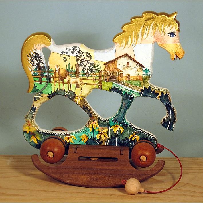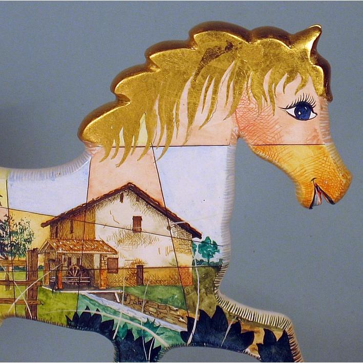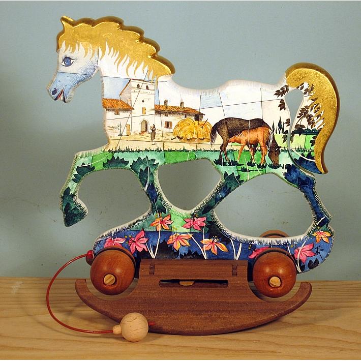 Giocattoli d'arte da collezione, realizzati con legni pregiati, dipinti ad acquerello variamente diluito e tampone con finiture in foglia d'oro 22Kt. Sono tutti pezzi unici, numerati e catalogati, forniti di certificato di produzione firmato dall'artista e sigillati con logo in cera lacca. Ideali per il collezionista, per un regalo di prestigio, per l'arredamento, opere rivolte a bambini e ragazzi come forma educativa per avvicinarli all'arte. Collectible art toys made of precious wood, painted with watercolor and swab with 22Kt gold leaf finishes. They are all unique pieces, numbered and cataloged, provided with a production certificate signed by the artist and sealed with lacquer wax logo. Ideal for the collector, for a prestigious gift, for furnishings, works directed at children and teens as an educational form to bring them closer to art.