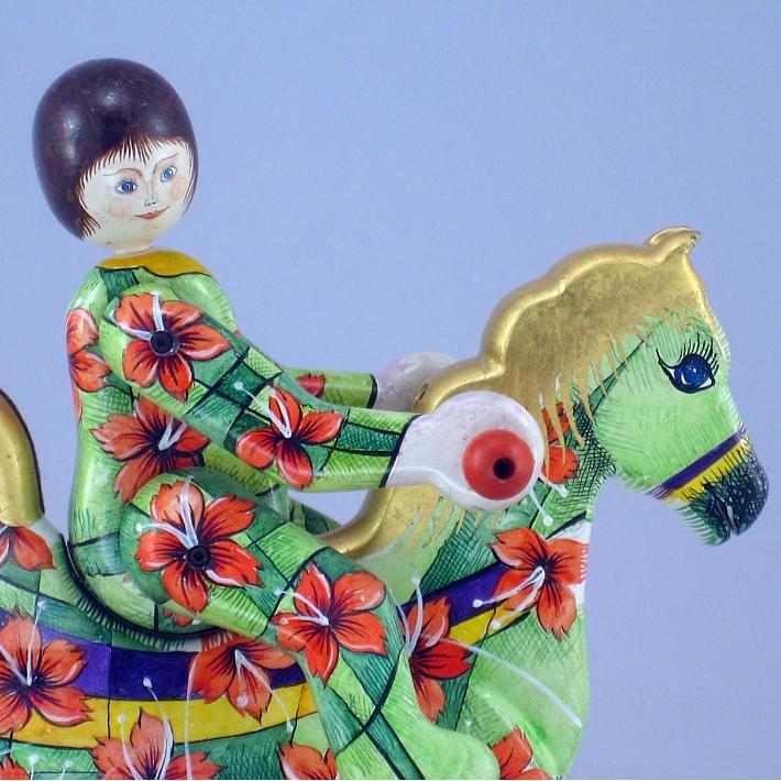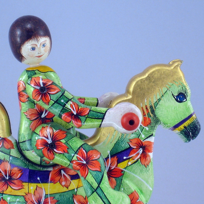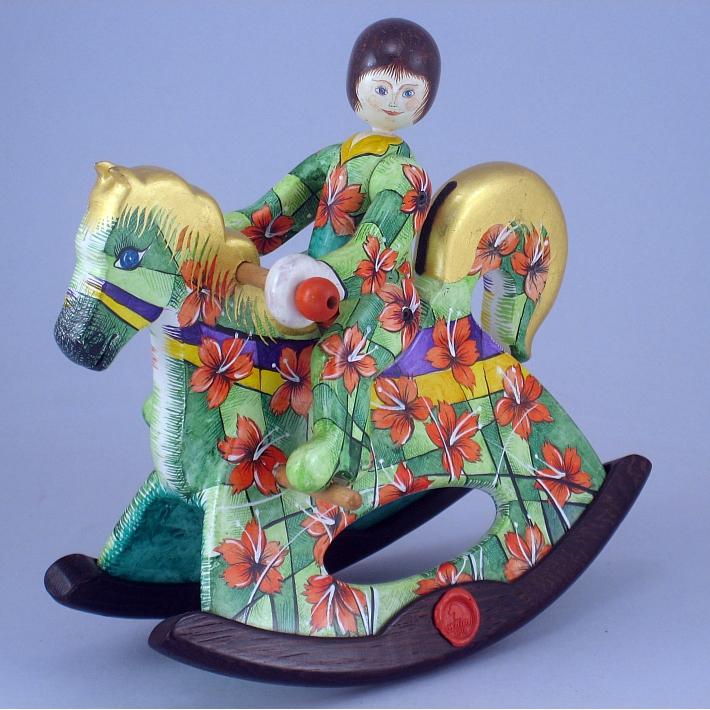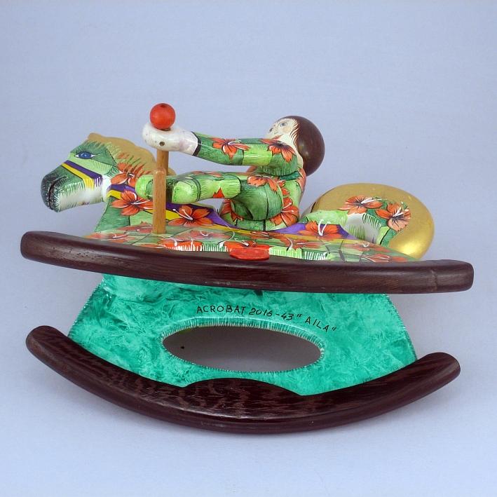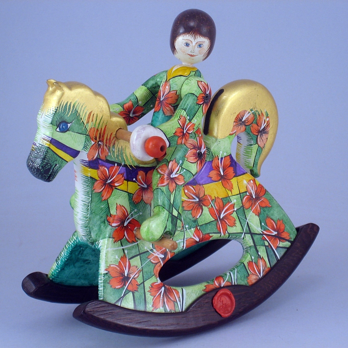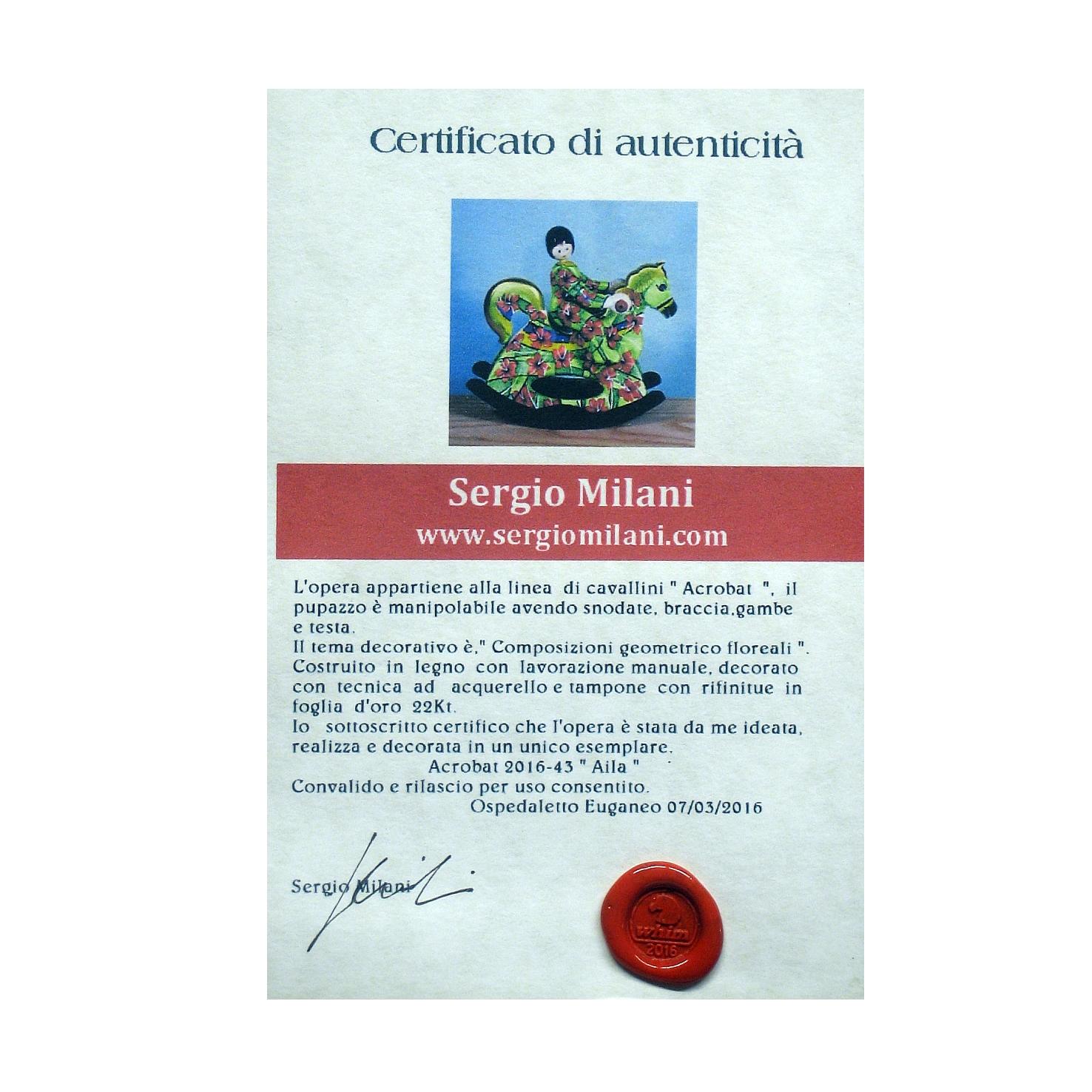 Giocattoli d'arte da collezione, realizzati con legni pregiati, dipinti ad acquerello variamente diluito e tampone con finiture in foglia d'oro 22Kt. Sono tutti pezzi unici, numerati e catalogati, forniti di certificato di produzione firmato dall'artista e sigillati con logo in cera lacca. Ideali per il collezionista, per un regalo di prestigio, per l'arredamento, opere rivolte a bambini e ragazzi come forma educativa per avvicinarli all'arte. Collectible art toys made of precious wood, painted with watercolor and swab with 22Kt gold leaf finishes. They are all unique pieces, numbered and cataloged, provided with a production certificate signed by the artist and sealed with lacquer wax logo. Ideal for the collector, for a prestigious gift, for furnishings, works directed at children and teens as an educational form to bring them closer to art.