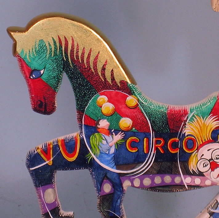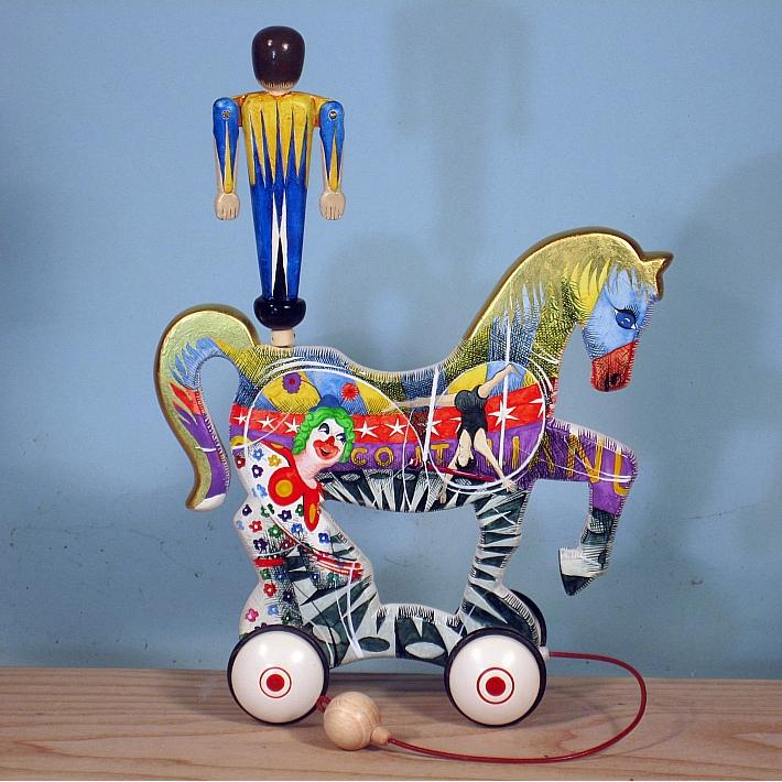 Giocattoli d'arte da collezione, realizzati con legni pregiati, dipinti ad acquerello variamente diluito e tampone con finiture in foglia d'oro 22Kt. Sono tutti pezzi unici, numerati e catalogati, forniti di certificato di produzione firmato dall'artista e sigillati con logo in cera lacca. Ideali per il collezionista, per un regalo di prestigio, per l'arredamento, opere rivolte a bambini e ragazzi come forma educativa per avvicinarli all'arte. Collectible art toys made of precious wood, painted with watercolor and swab with 22Kt gold leaf finishes. They are all unique pieces, numbered and cataloged, provided with a production certificate signed by the artist and sealed with lacquer wax logo. Ideal for the collector, for a prestigious gift, for furnishings, works directed at children and teens as an educational form to bring them closer to art.