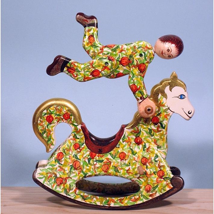 Giocattoli d'arte da collezione, realizzati con legni pregiati, dipinti ad acquerello variamente diluito e tampone con finiture in foglia d'oro 22Kt. Sono tutti pezzi unici, numerati e catalogati, forniti di certificato di produzione firmato dall'artista e sigillati con logo in cera lacca. Ideali per il collezionista, per un regalo di prestigio, per l'arredamento, opere rivolte a bambini e ragazzi come forma educativa per avvicinarli all'arte. Collectible art toys made of precious wood, painted with watercolor and swab with 22Kt gold leaf finishes. They are all unique pieces, numbered and cataloged, provided with a production certificate signed by the artist and sealed with lacquer wax logo. Ideal for the collector, for a prestigious gift, for furnishings, works directed at children and teens as an educational form to bring them closer to art.