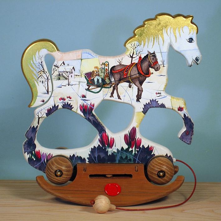 Giocattoli d'arte da collezione, realizzati con legni pregiati, dipinti ad acquerello variamente diluito e tampone con finiture in foglia d'oro 22Kt. Sono tutti pezzi unici, numerati e catalogati, forniti di certificato di produzione firmato dall'artista e sigillati con logo in cera lacca. Ideali per il collezionista, per un regalo di prestigio, per l'arredamento, opere rivolte a bambini e ragazzi come forma educativa per avvicinarli all'arte. Collectible art toys made of precious wood, painted with watercolor and swab with 22Kt gold leaf finishes. They are all unique pieces, numbered and cataloged, provided with a production certificate signed by the artist and sealed with lacquer wax logo. Ideal for the collector, for a prestigious gift, for furnishings, works directed at children and teens as an educational form to bring them closer to art.