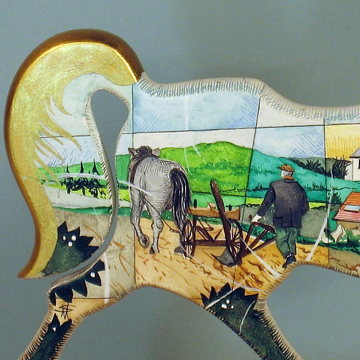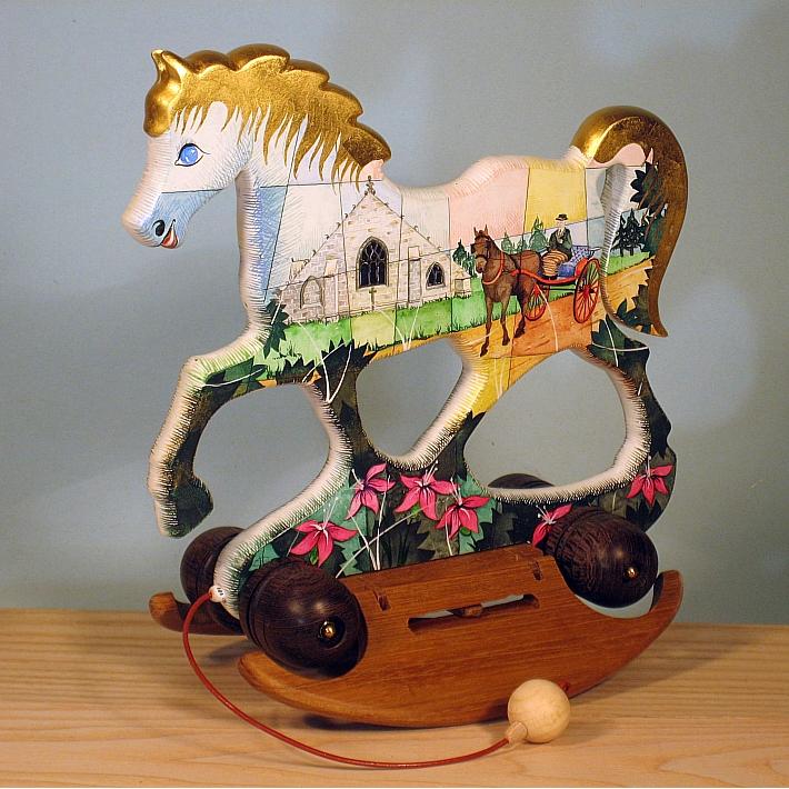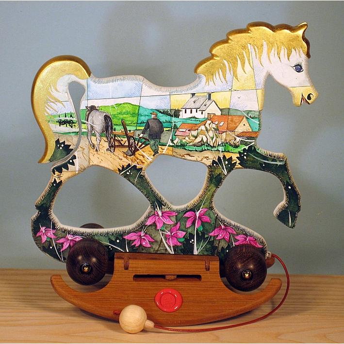 Giocattoli d'arte da collezione, realizzati con legni pregiati, dipinti ad acquerello variamente diluito e tampone con finiture in foglia d'oro 22Kt. Sono tutti pezzi unici, numerati e catalogati, forniti di certificato di produzione firmato dall'artista e sigillati con logo in cera lacca. Ideali per il collezionista, per un regalo di prestigio, per l'arredamento, opere rivolte a bambini e ragazzi come forma educativa per avvicinarli all'arte. Collectible art toys made of precious wood, painted with watercolor and swab with 22Kt gold leaf finishes. They are all unique pieces, numbered and cataloged, provided with a production certificate signed by the artist and sealed with lacquer wax logo. Ideal for the collector, for a prestigious gift, for furnishings, works directed at children and teens as an educational form to bring them closer to art.