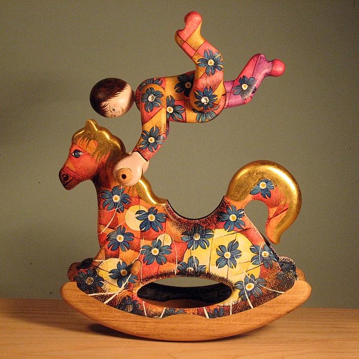 Giocattoli d'arte da collezione, realizzati con legni pregiati, dipinti ad acquerello variamente diluito e tampone con finiture in foglia d'oro 22Kt. Sono tutti pezzi unici, numerati e catalogati, forniti di certificato di produzione firmato dall'artista e sigillati con logo in cera lacca. Ideali per il collezionista, per un regalo di prestigio, per l'arredamento, opere rivolte a bambini e ragazzi come forma educativa per avvicinarli all'arte. Collectible art toys made of precious wood, painted with watercolor and swab with 22Kt gold leaf finishes. They are all unique pieces, numbered and cataloged, provided with a production certificate signed by the artist and sealed with lacquer wax logo. Ideal for the collector, for a prestigious gift, for furnishings, works directed at children and teens as an educational form to bring them closer to art.