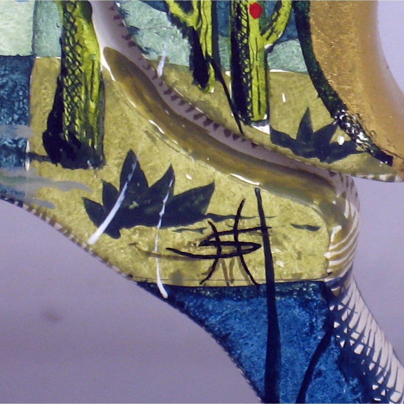 Giocattoli d'arte da collezione, realizzati con legni pregiati, dipinti ad acquerello variamente diluito e tampone con finiture in foglia d'oro 22Kt. Sono tutti pezzi unici, numerati e catalogati, forniti di certificato di produzione firmato dall'artista e sigillati con logo in cera lacca. Ideali per il collezionista, per un regalo di prestigio, per l'arredamento, opere rivolte a bambini e ragazzi come forma educativa per avvicinarli all'arte. Collectible art toys made of precious wood, painted with watercolor and swab with 22Kt gold leaf finishes. They are all unique pieces, numbered and cataloged, provided with a production certificate signed by the artist and sealed with lacquer wax logo. Ideal for the collector, for a prestigious gift, for furnishings, works directed at children and teens as an educational form to bring them closer to art.