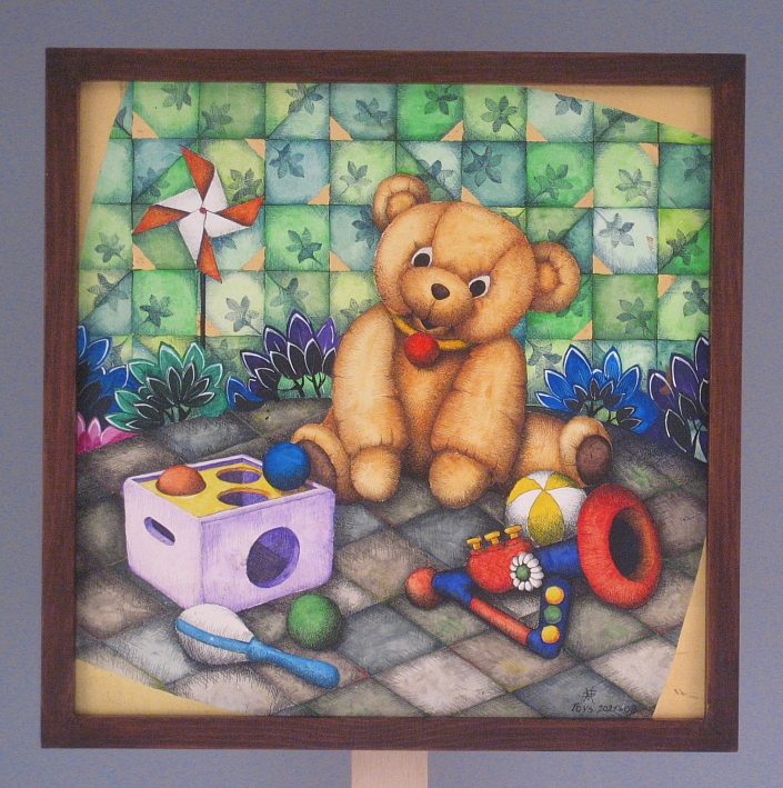 Toys 2021-08 opera ideata, realizzata, dipinta in Italy - dimensioni cm 30 x30x2,5 - peso Kg 1,0