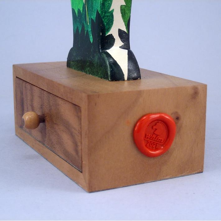 Giocattoli d'arte da collezione, realizzati con legni pregiati, dipinti ad acquerello variamente diluito e tampone con finiture in foglia d'oro 22Kt. Sono tutti pezzi unici, numerati e catalogati, forniti di certificato di produzione firmato dall'artista e sigillati con logo in cera lacca. Ideali per il collezionista, per un regalo di prestigio, per l'arredamento, opere rivolte a bambini e ragazzi come forma educativa per avvicinarli all'arte. Collectible art toys made of precious wood, painted with watercolor and swab with 22Kt gold leaf finishes. They are all unique pieces, numbered and cataloged, provided with a production certificate signed by the artist and sealed with lacquer wax logo. Ideal for the collector, for a prestigious gift, for furnishings, works directed at children and teens as an educational form to bring them closer to art.
