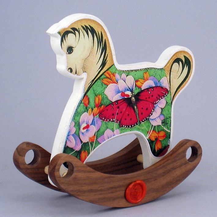 Giocattoli d'arte da collezione, realizzati con legni pregiati, dipinti ad acquerello variamente diluito e tampone con finiture in foglia d'oro 22Kt. Sono tutti pezzi unici, numerati e catalogati, forniti di certificato di produzione firmato dall'artista e sigillati con logo in cera lacca. Ideali per il collezionista, per un regalo di prestigio, per l'arredamento, opere rivolte a bambini e ragazzi come forma educativa per avvicinarli all'arte. Collectible art toys made of precious wood, painted with watercolor and swab with 22Kt gold leaf finishes. They are all unique pieces, numbered and cataloged, provided with a production certificate signed by the artist and sealed with lacquer wax logo. Ideal for the collector, for a prestigious gift, for furnishings, works directed at children and teens as an educational form to bring them closer to art.