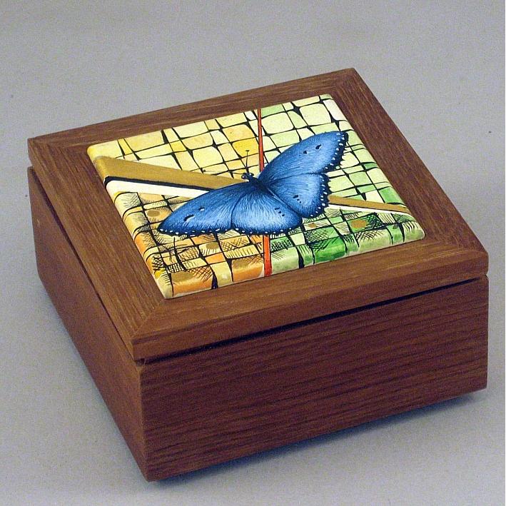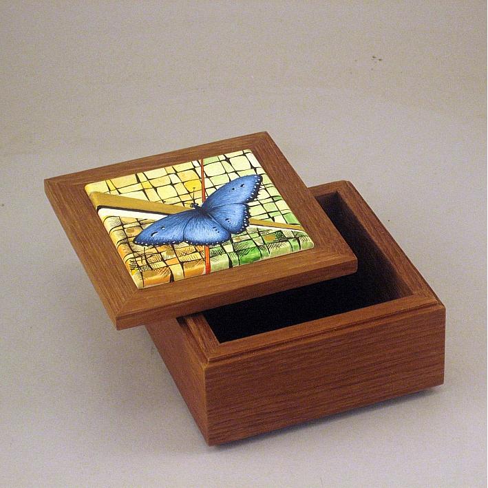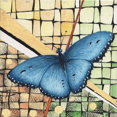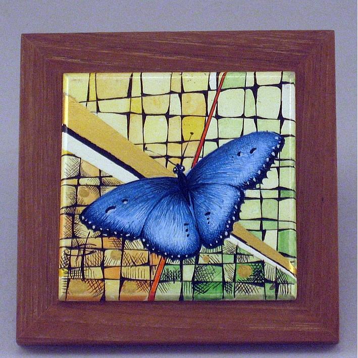 Il tema decorativo è "Composizioni cromatiche con farfalle", realizzato con colori ad acquerello variamente diluiti e tamponati con finiture in foglia d'oro 22 Kt.
