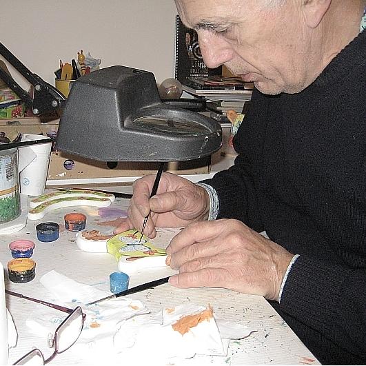 La decorazione avviene dopo avere scelto e sviluppato graficamente il disegno. Il tema da interpretare è unico per tutti i cavallini della stessa linea, invece i soggetti e la composizione obbligatoriamente sono sempre diversi per creare così tutti pezzi unici.