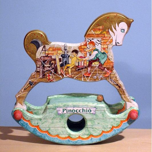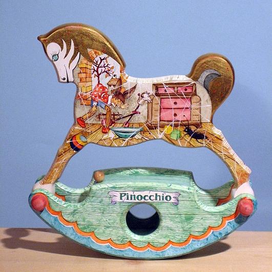 Giocattoli d'arte da collezione, realizzati con legni pregiati, dipinti ad acquerello variamente diluito e tampone con finiture in foglia d'oro 22Kt. Sono tutti pezzi unici, numerati e catalogati, forniti di certificato di produzione firmato dall'artista e sigillati con logo in cera lacca. Ideali per il collezionista, per un regalo di prestigio, per l'arredamento, opere rivolte a bambini e ragazzi come forma educativa per avvicinarli all'arte. Collectible art toys made of precious wood, painted with watercolor and swab with 22Kt gold leaf finishes. They are all unique pieces, numbered and cataloged, provided with a production certificate signed by the artist and sealed with lacquer wax logo. Ideal for the collector, for a prestigious gift, for furnishings, works directed at children and teens as an educational form to bring them closer to art.